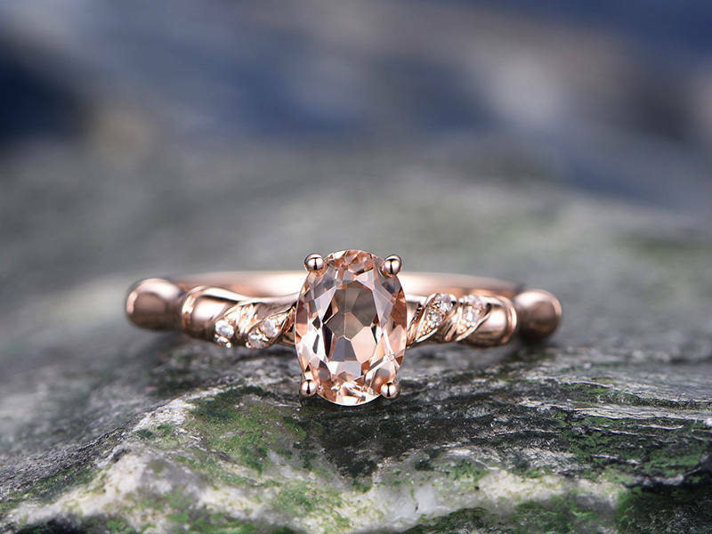 1.1Ct Oval Cut Peach Morganite Bamboo Design Engagement Ring 14K Rose Gold Over