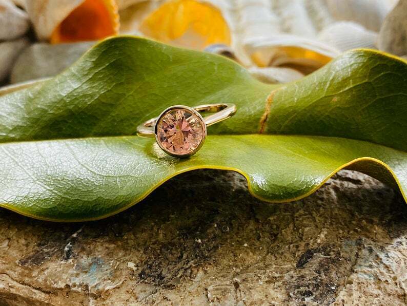 1.23ct Engagement Ring Round Cut Peach Morganite Solitaire 14k White Gold Finish