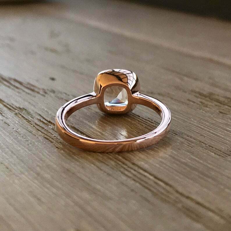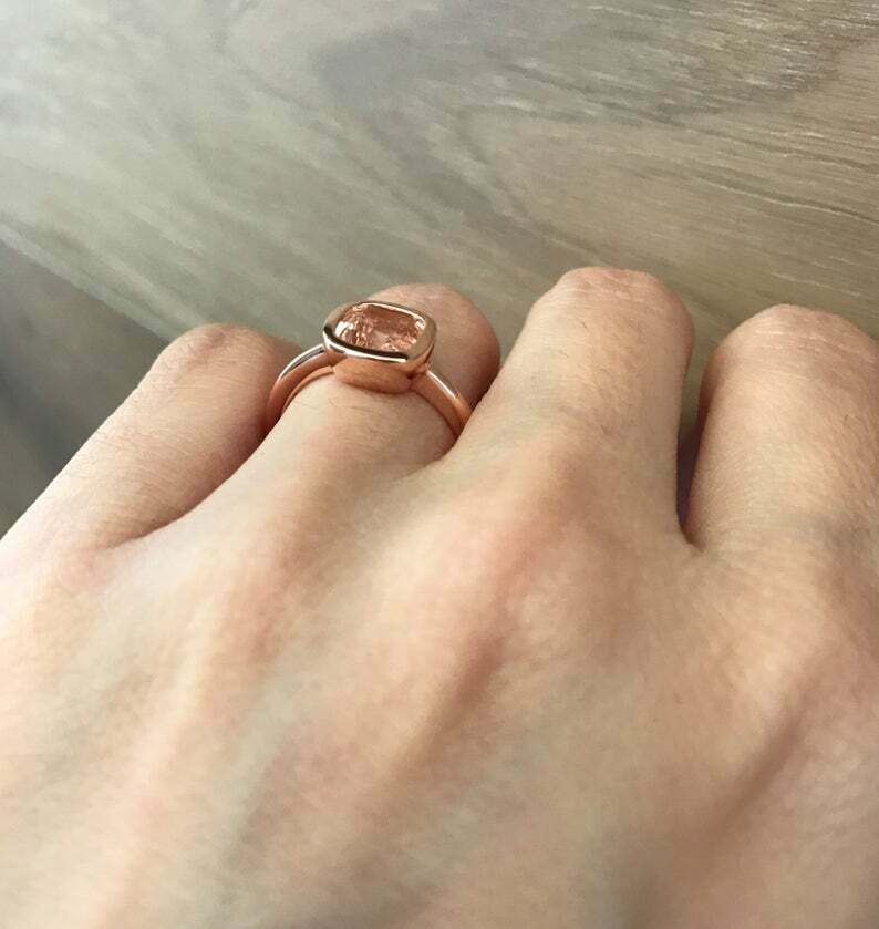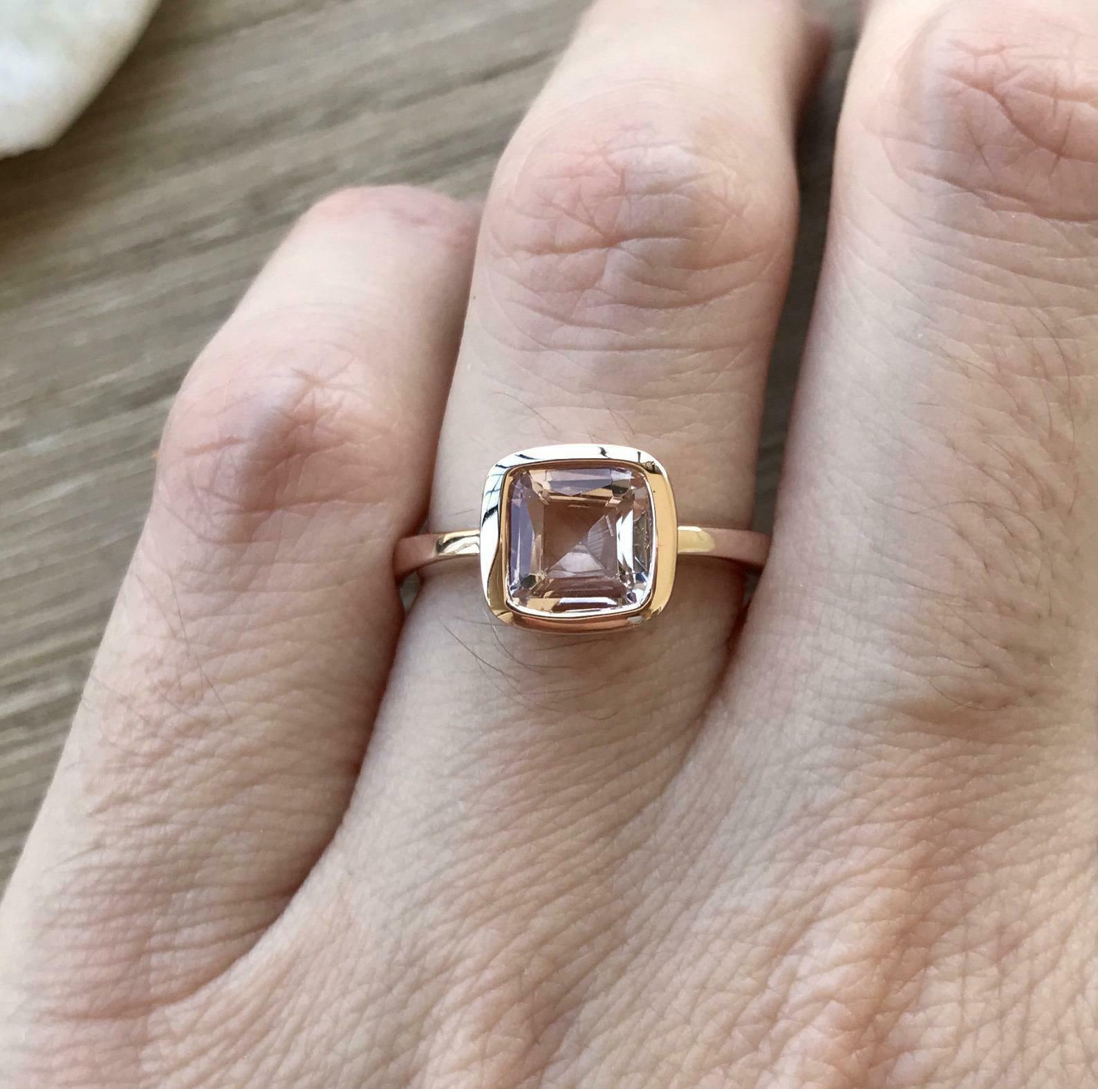 1.2ct Asscher Cut Peach Morganite Engagement Ring Bezel Set 14k Rose Gold Finish
