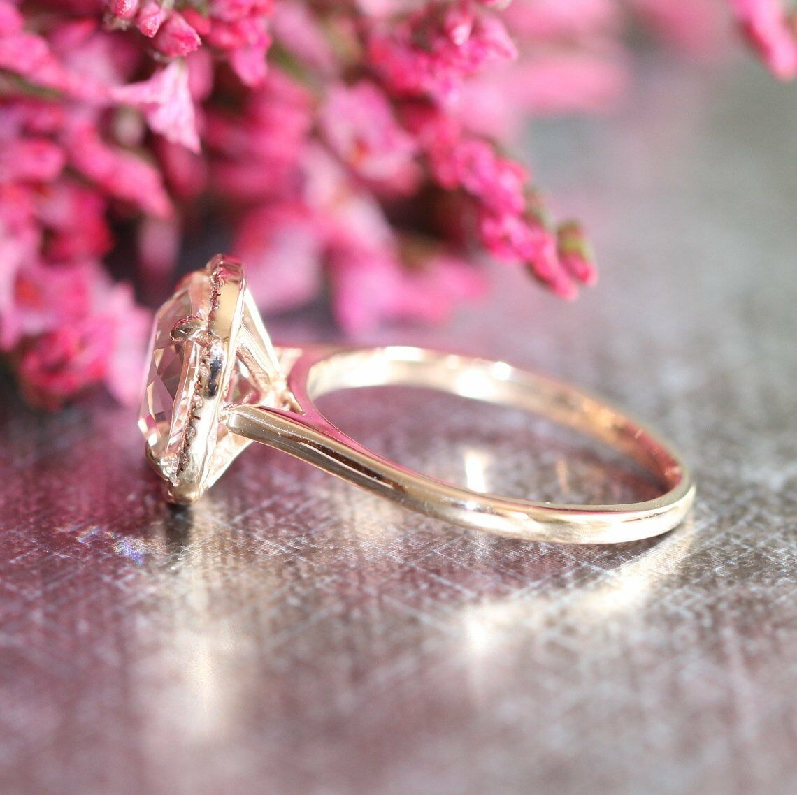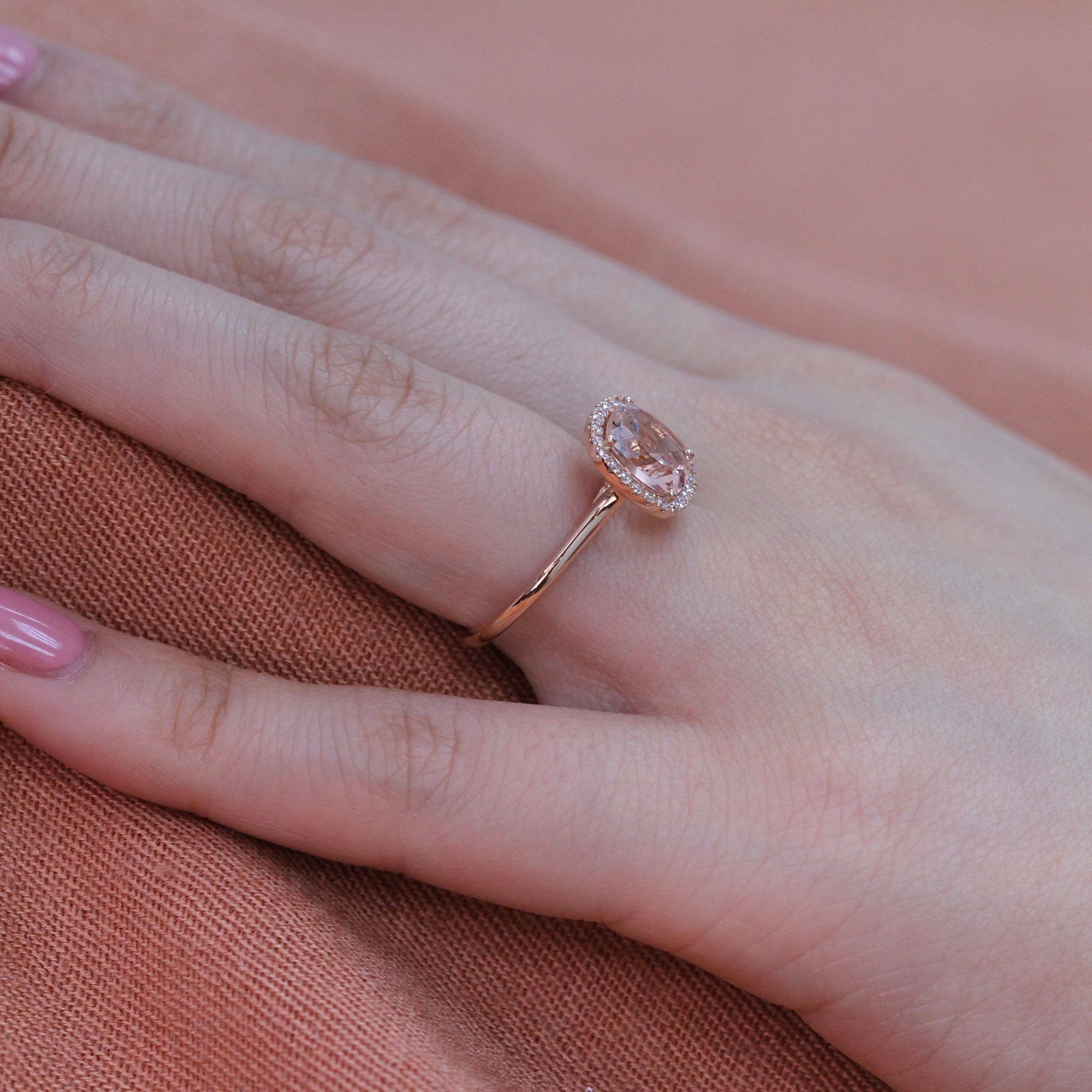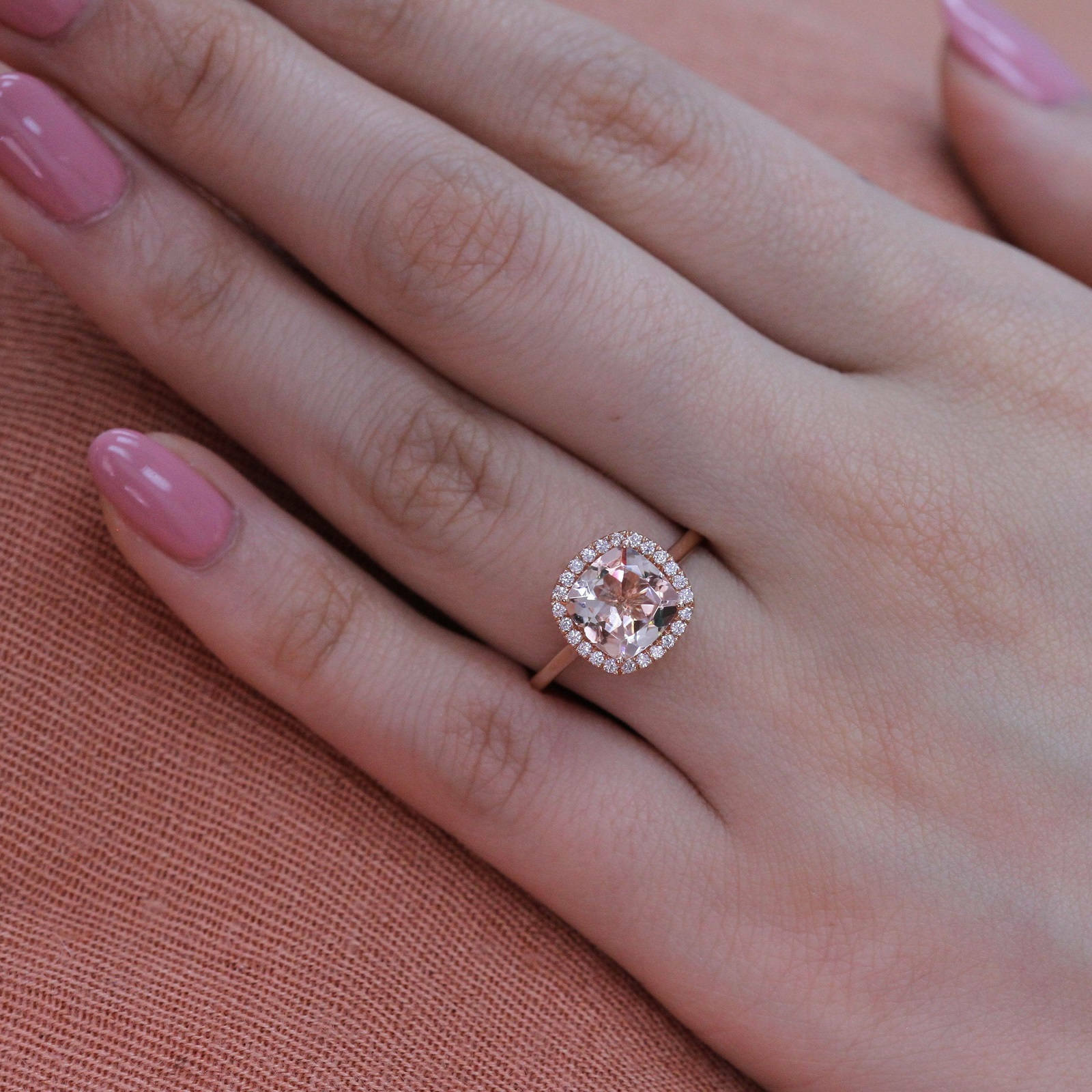 1.2ct Cushion Cut Peach Morganite Halo Engagement Ring 14k Rose Gold Finish