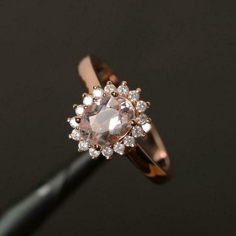 1.2ct Engagement Ring Oval Cut Peach Morganite Floral Halo 14k White Gold Finish