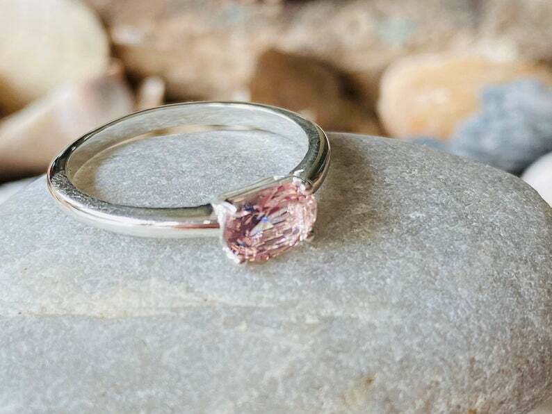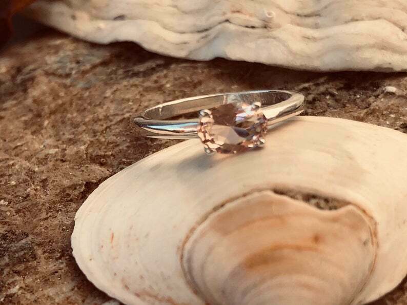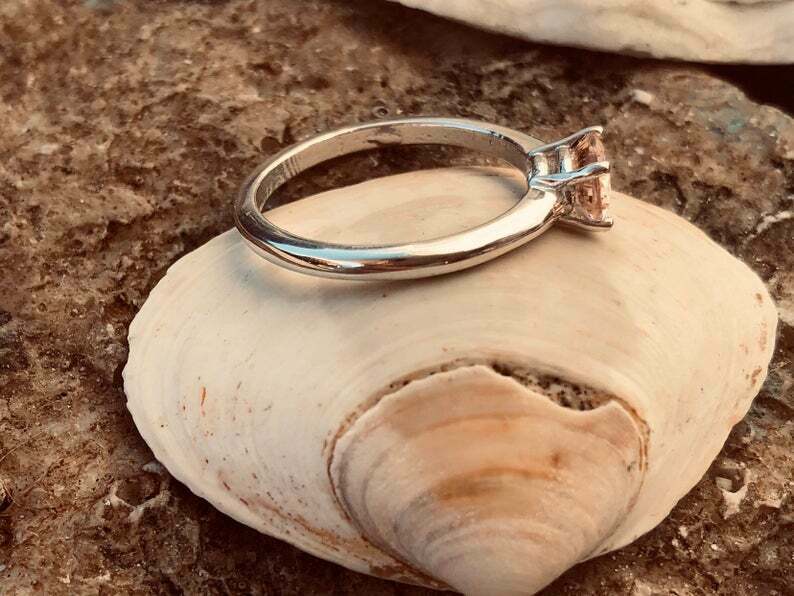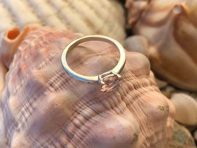 1.2ct Engagement Ring Oval Cut Peach Morganite Solitaire 14k White Gold Finish
