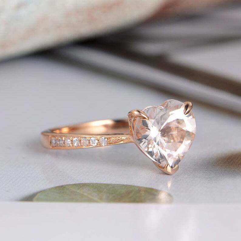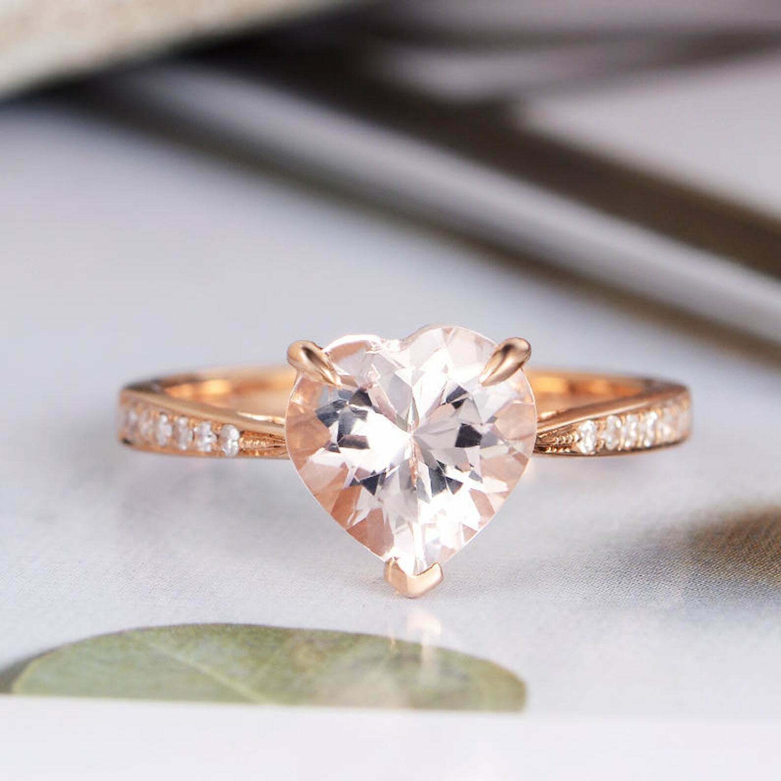 1.2ct Heart Cut Peach Morganite Solitaire Ring 14k Rose Gold Finish Round Accents