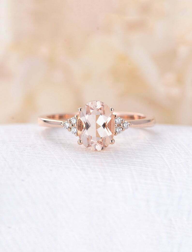 1.2ct Oval Cut Peach Morganite Diamond Petite Round Accent Ring 14k Rose Gold Finish