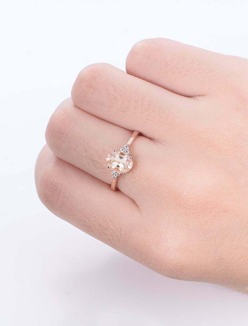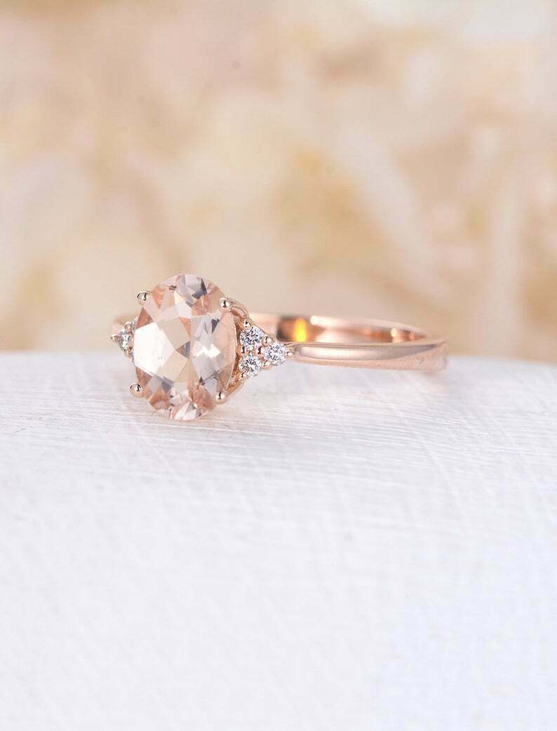 1.2ct Oval Cut Morganite Diamond Petite Round Accent Ring 14k Rose Gold Finish