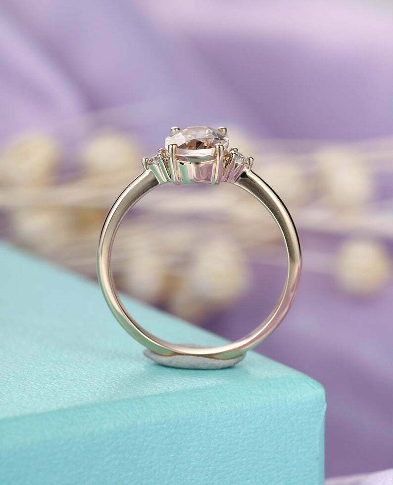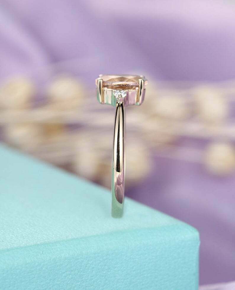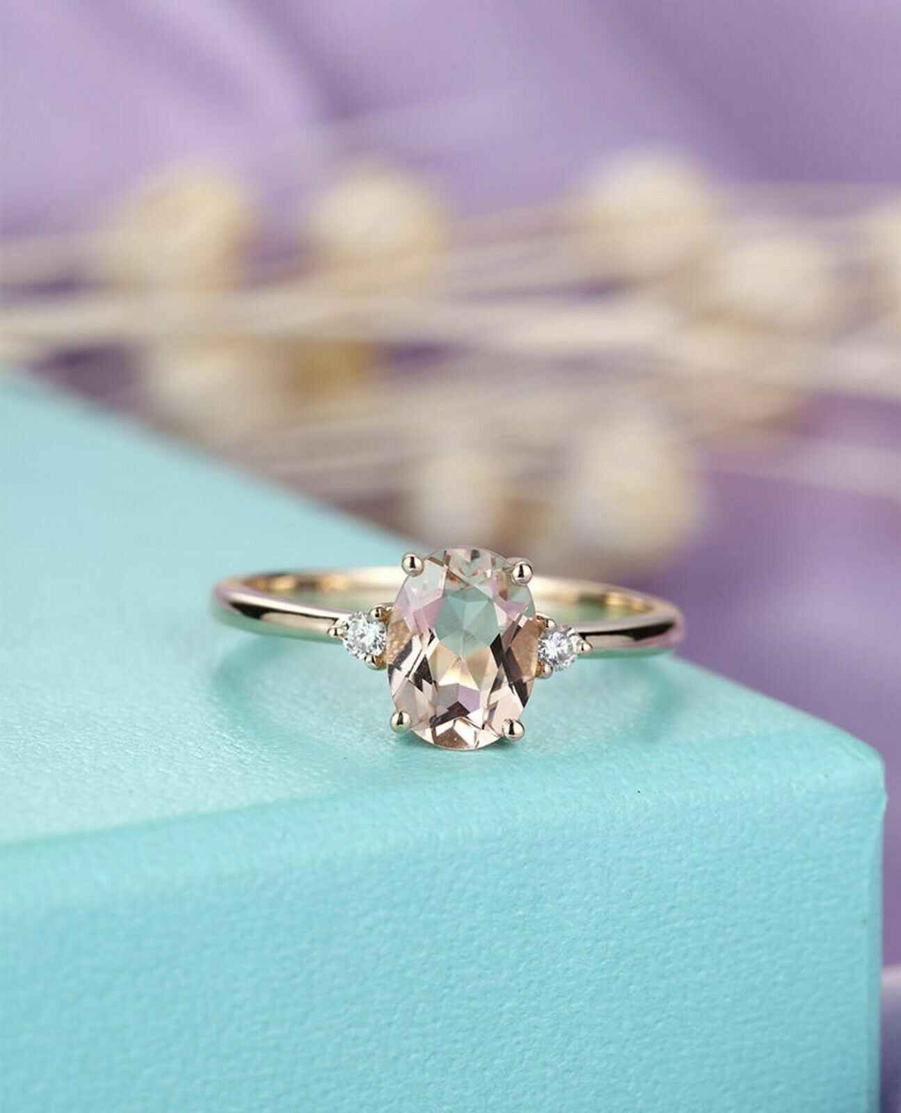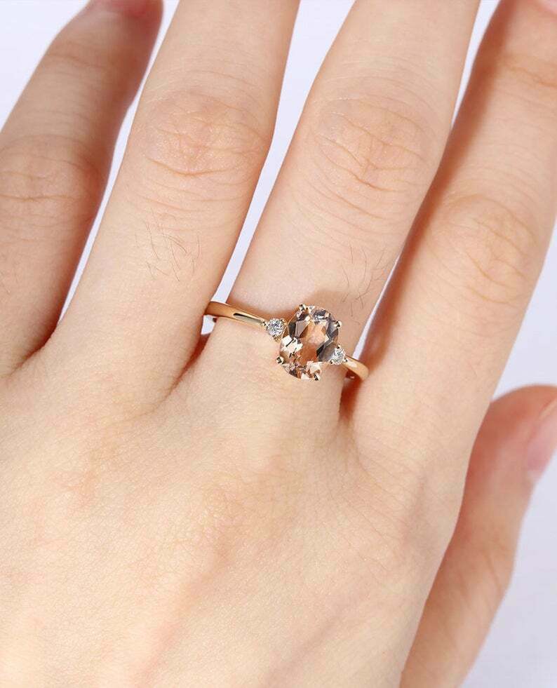 1.2ct Oval Cut Peach Morganite Engagement Ring Minimalist Trilogy 14k Yellow Gold Over