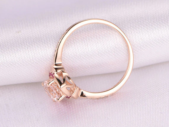 1.2ct Oval Cut Morganite Ruby Diamond Accents Engagement Ring 14k Rose Gold Over