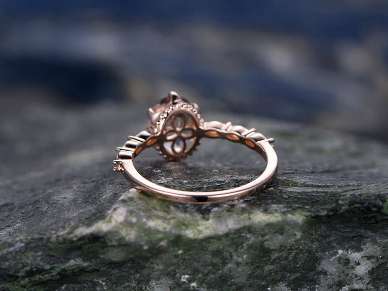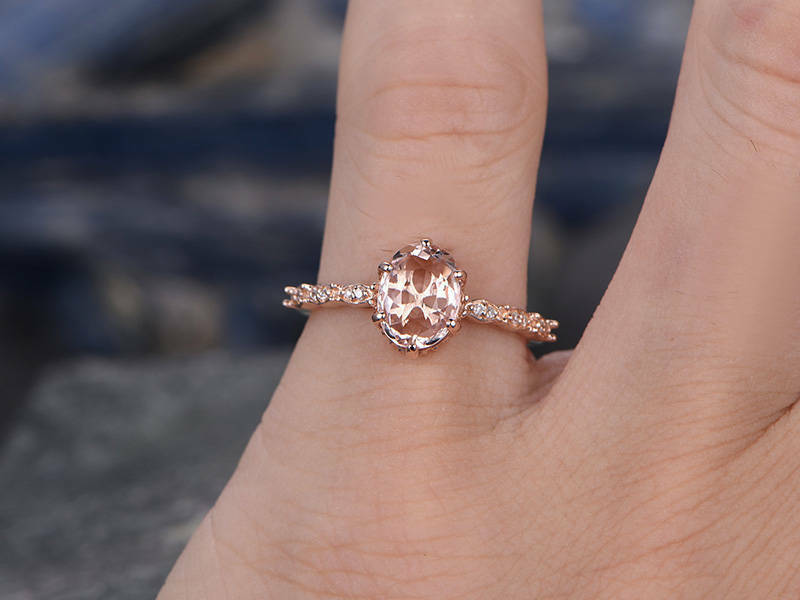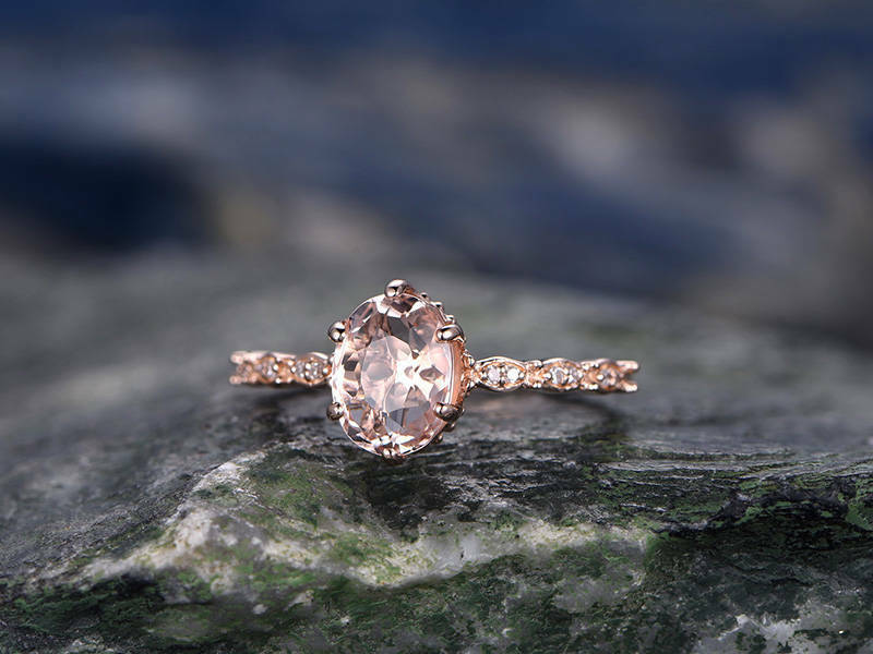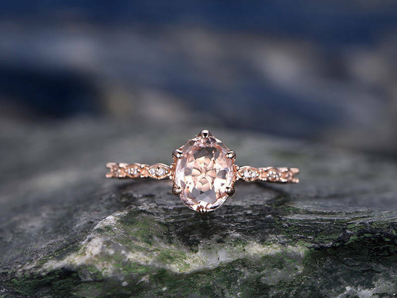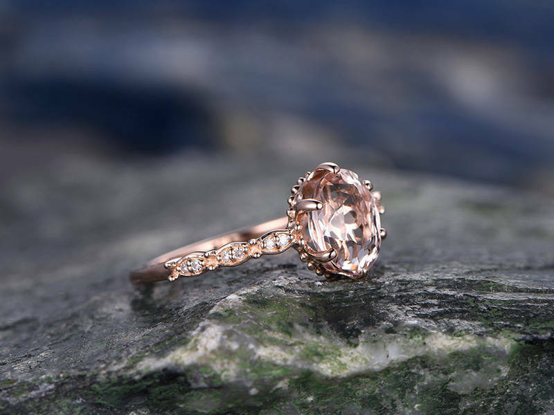 1.2Ct Oval Cut Peach Morganite Diamond Accent Engagement Ring 18K Rose Gold Over