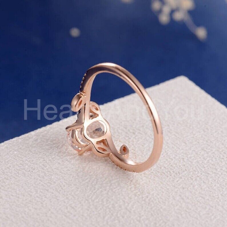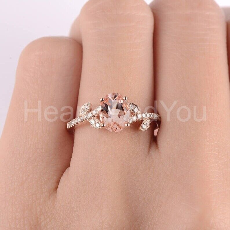 1.2ct Oval Cut Simulated Peach Morganite Leaf Accents Ring 14k Rose Gold Plated