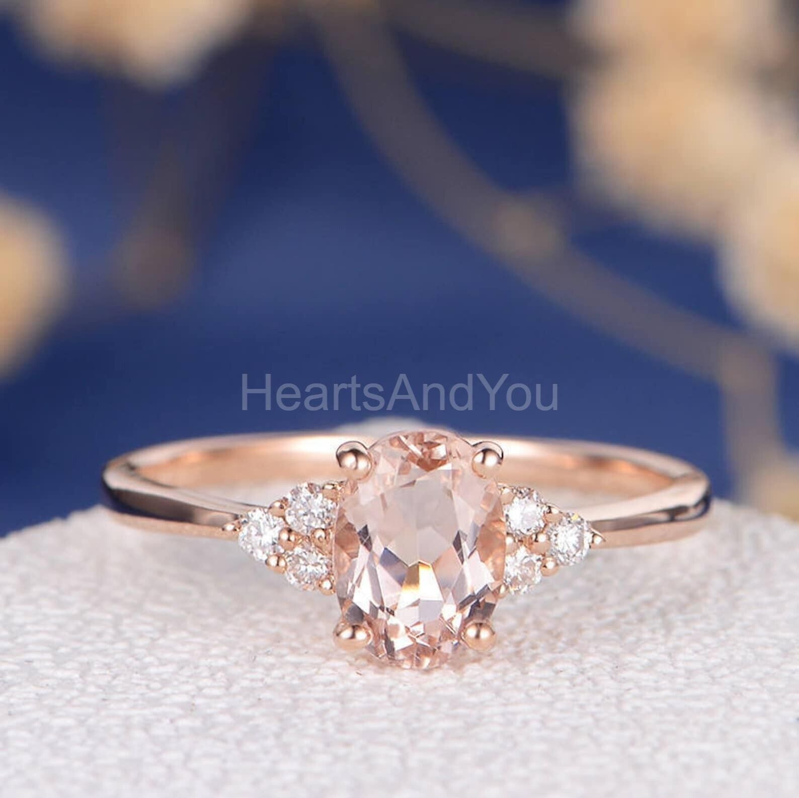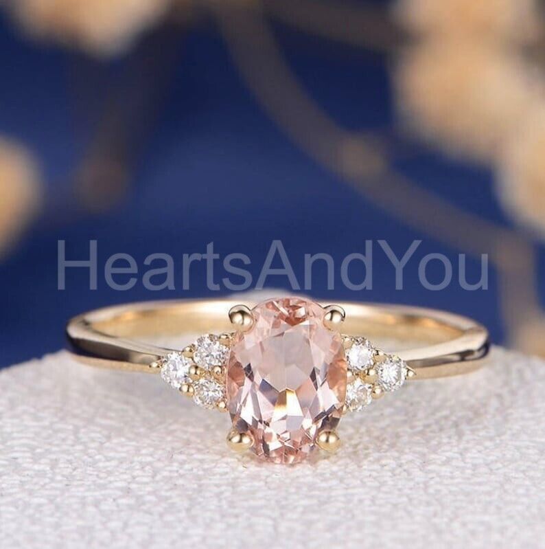 1.2ct Oval Cut Simulated Peach Morganite Round Accents Ring 14k Rose Gold Plated