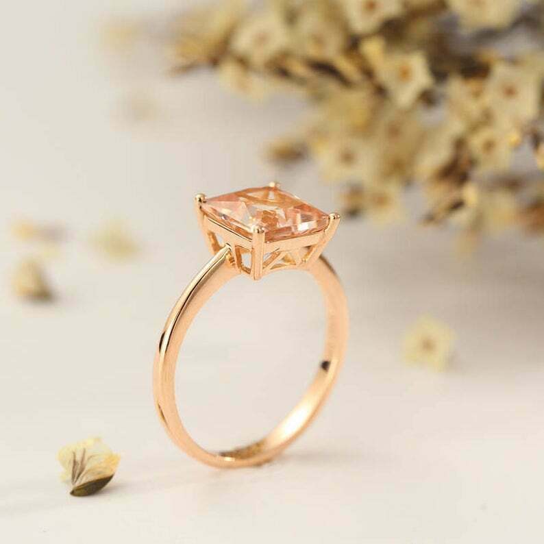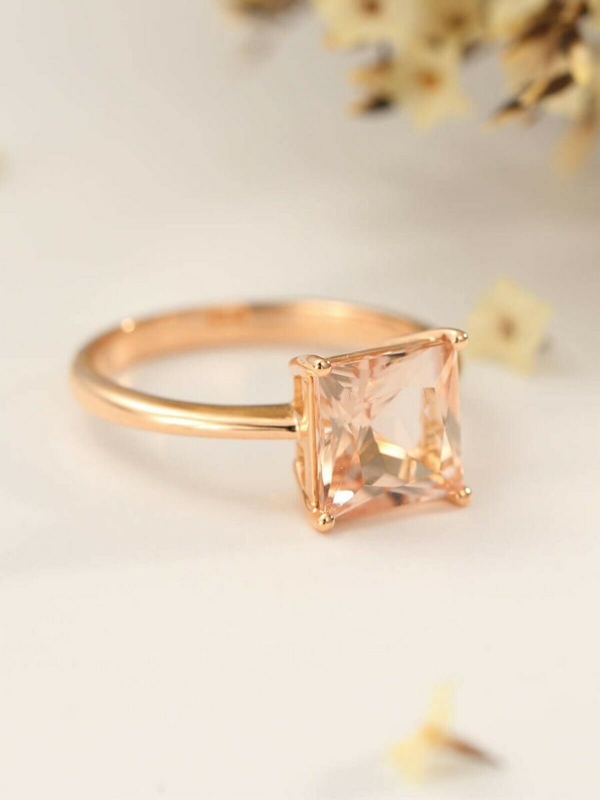1.2ct Princess Cut Peach Morganite Minimalist Solitaire Ring 14k RoseGold Finish