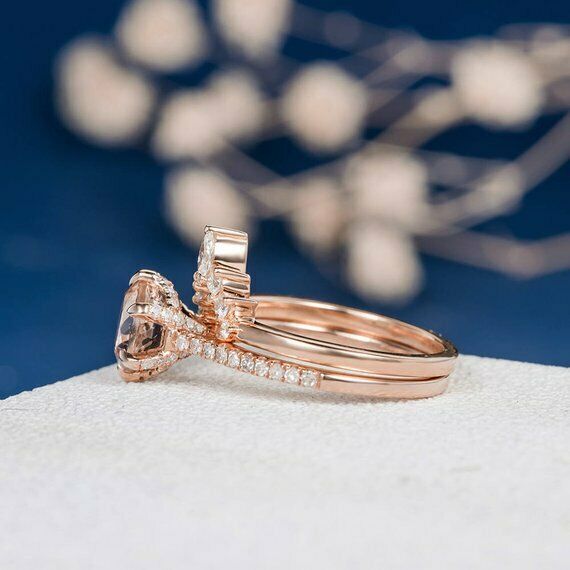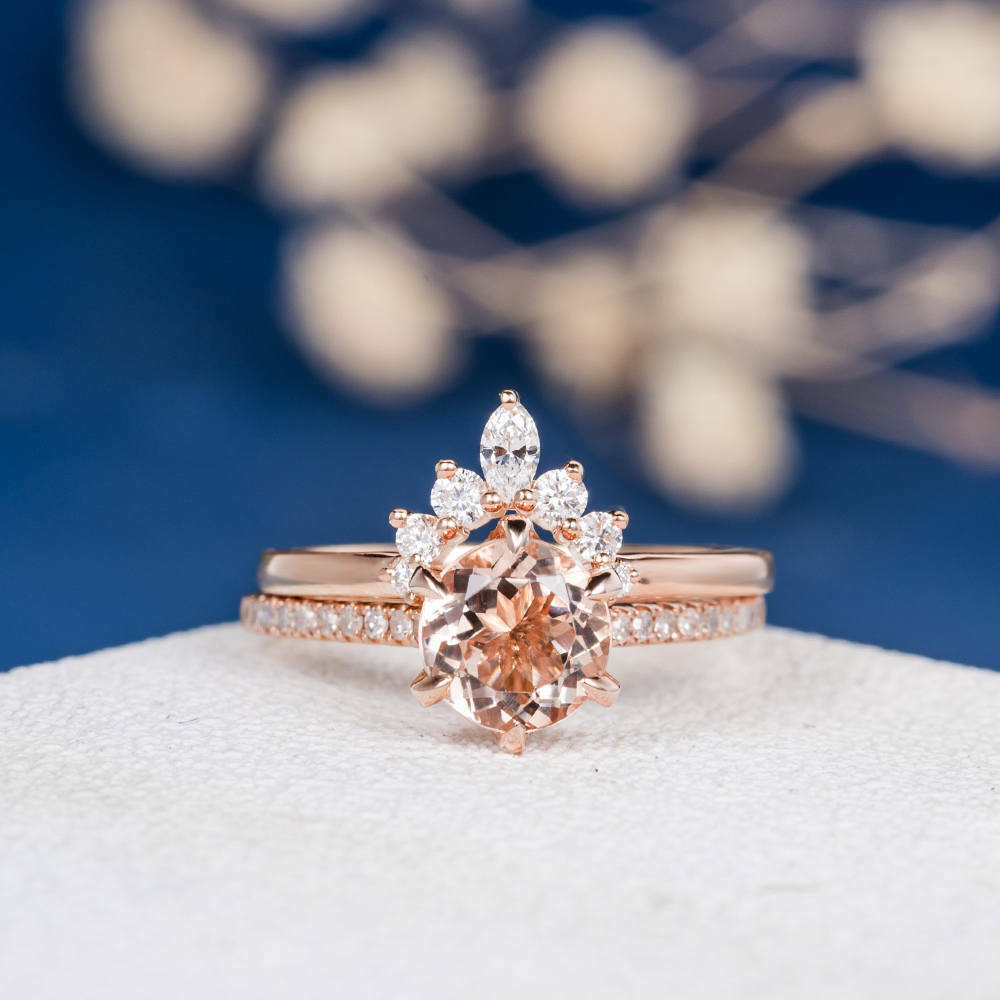 1.2ct Round Cut Peach Morganite Engagement Ring 14k Rose Gold Finish Bridal Set