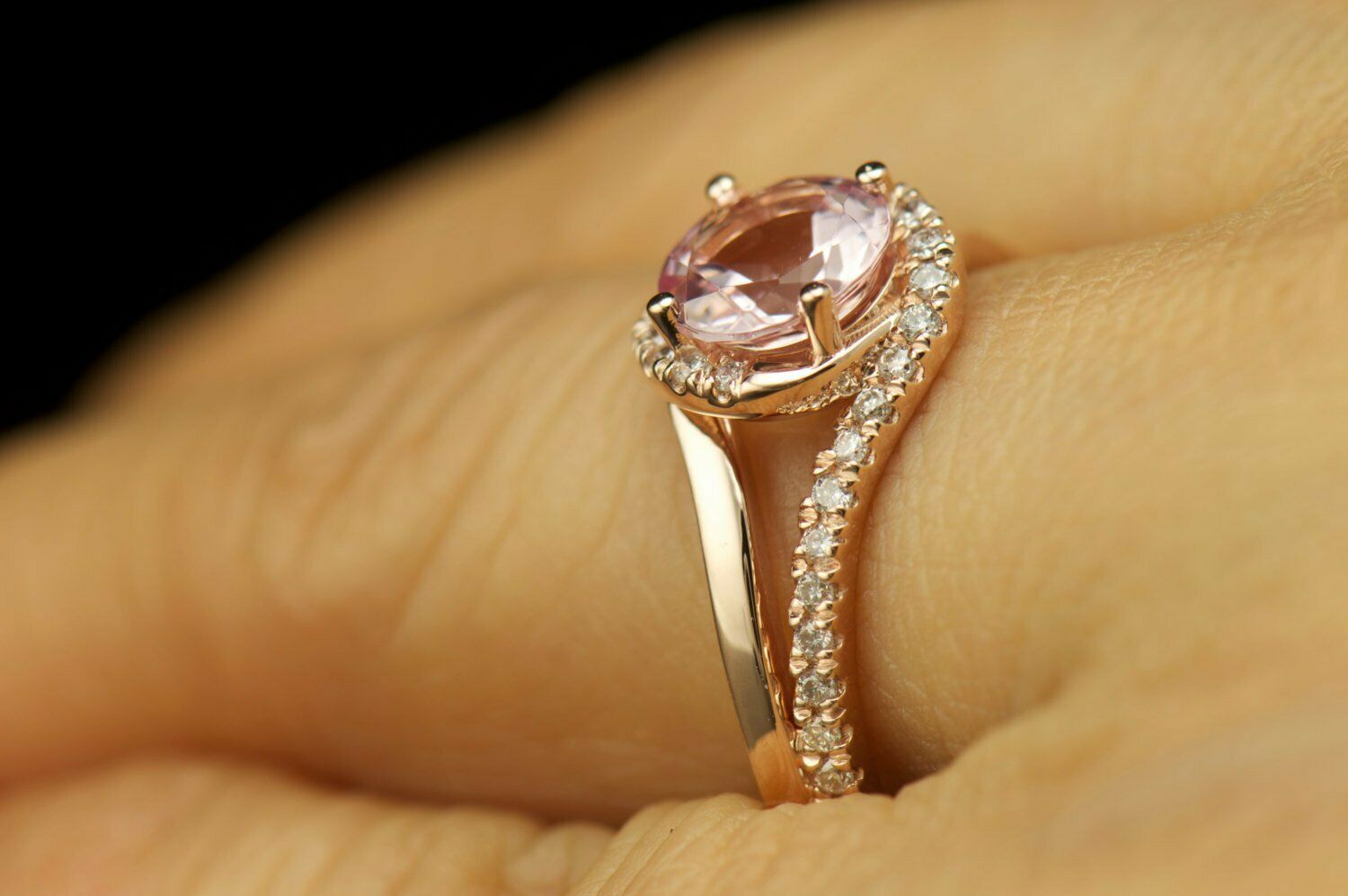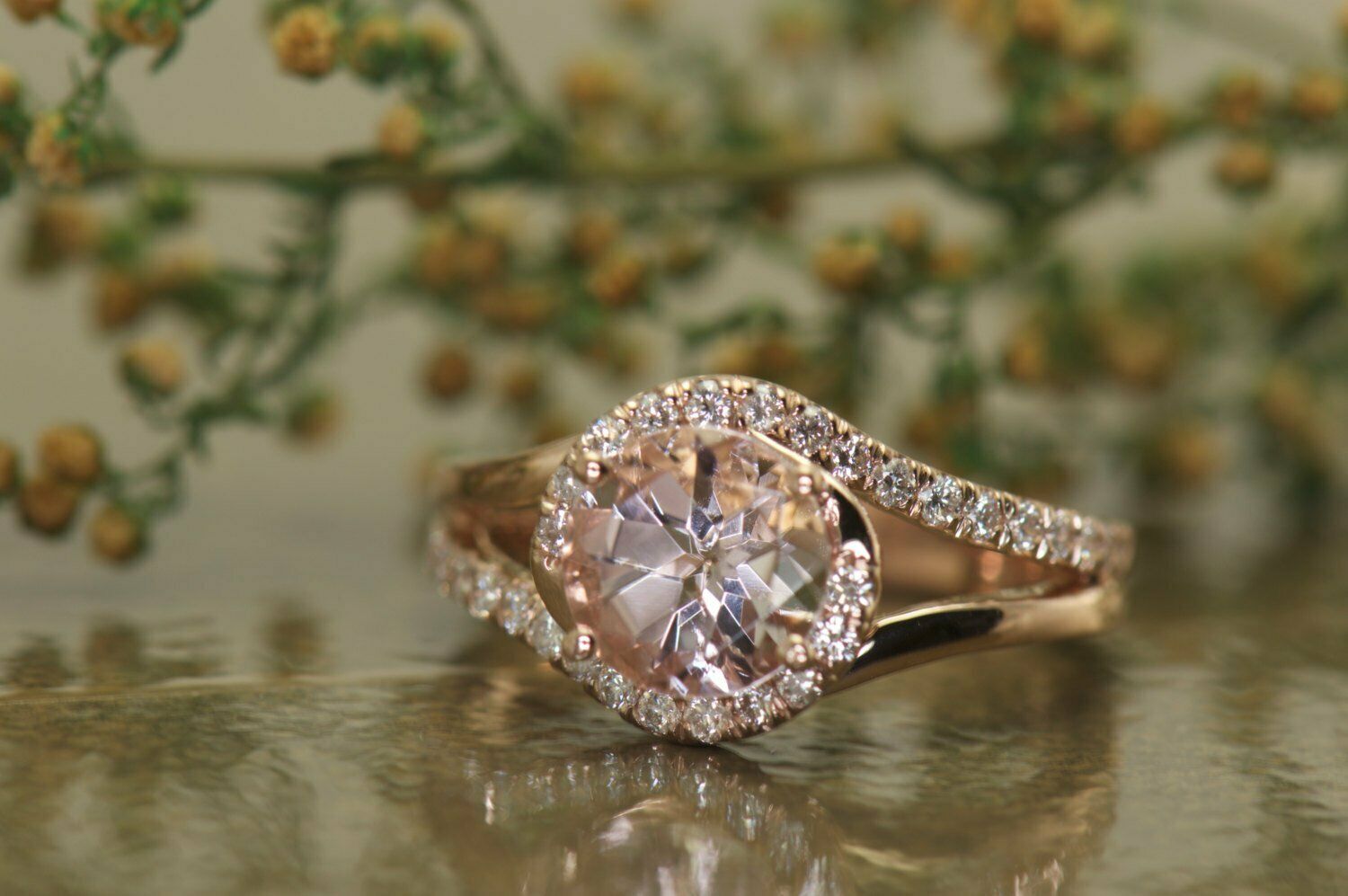 1.2ct Round Cut Peach Morganite Engagement Ring 14k Rose Gold Finish Split Shank