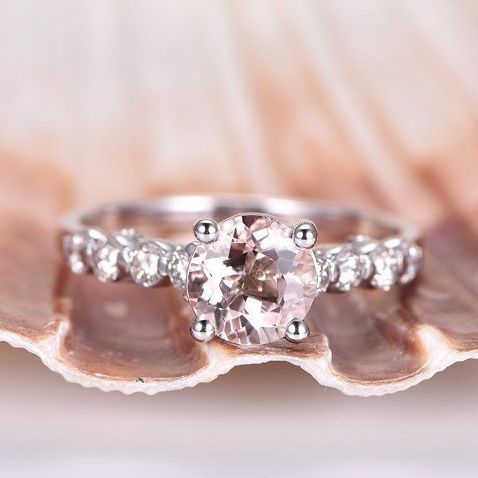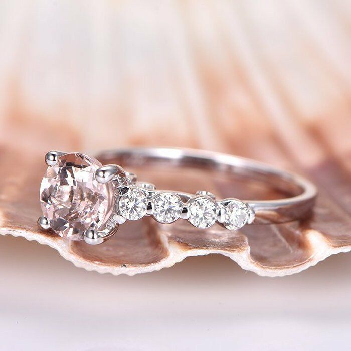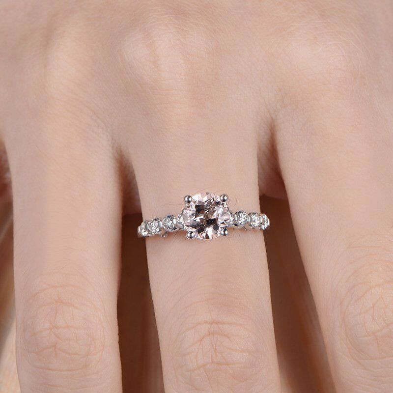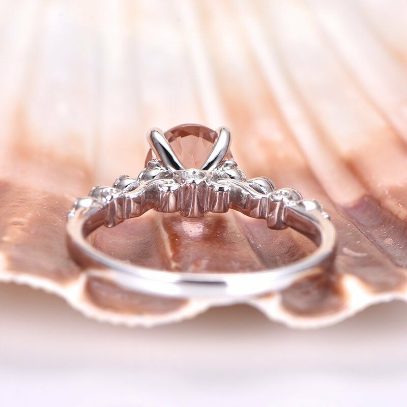 1.2ct Round Cut Peach Morganite Solitaire Engagement Ring 14k White Gold Finish
