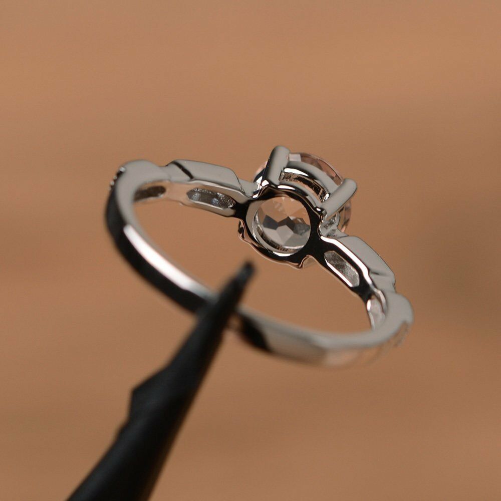 1.2ct Round Cut Peach Morganite Solitaire Engagement Ring 18k White Gold Finish