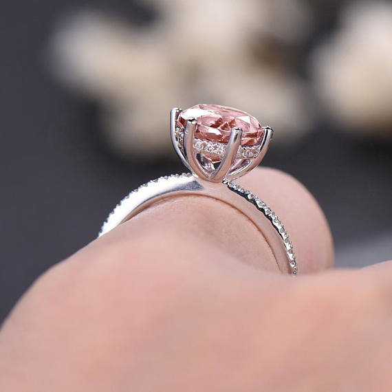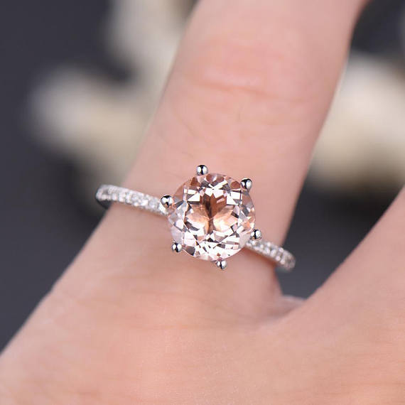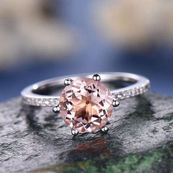 1.2ct Round Cut Peach Morganite Solitaire with Accent Ring 14k White Gold Finish