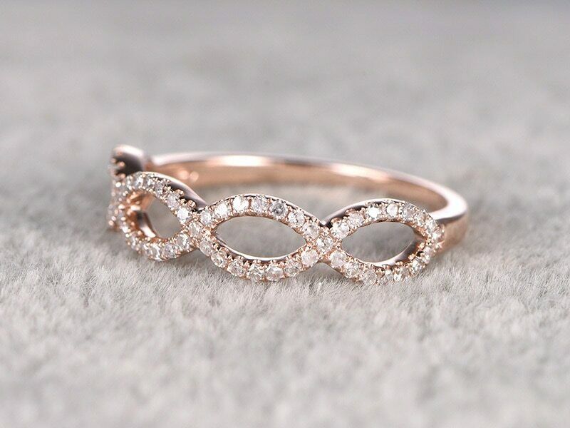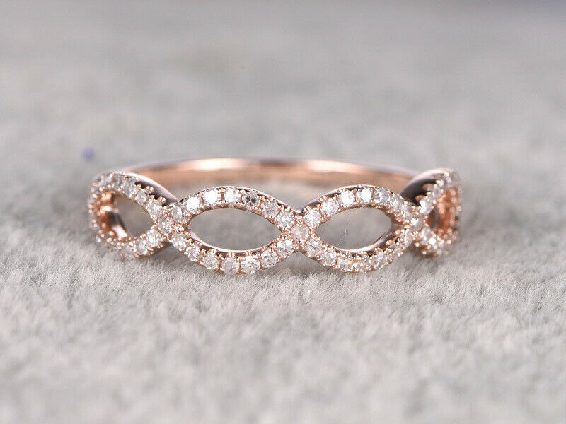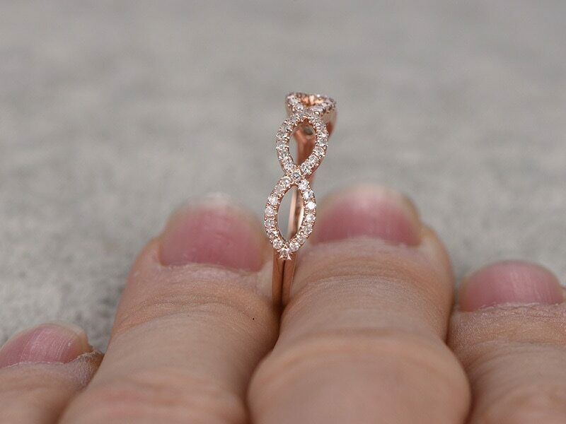 1.2ct Round Cut Peach Morganite Wedding Band Ring Infinity 14k Rose Gold Finish