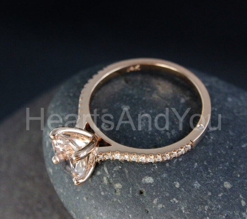 1.2ct Round Cut Simulated Morganite Accented Engagement Ring 14k RoseGold Plated