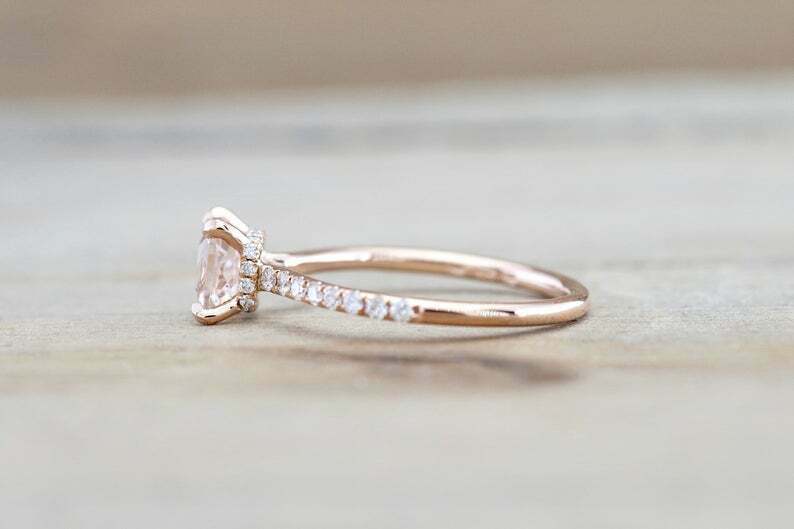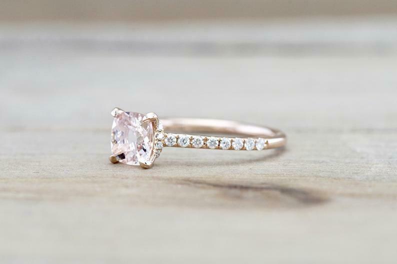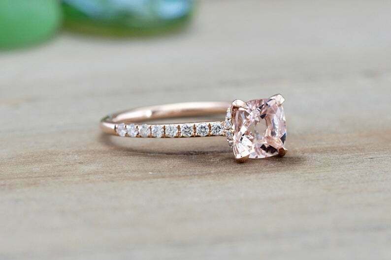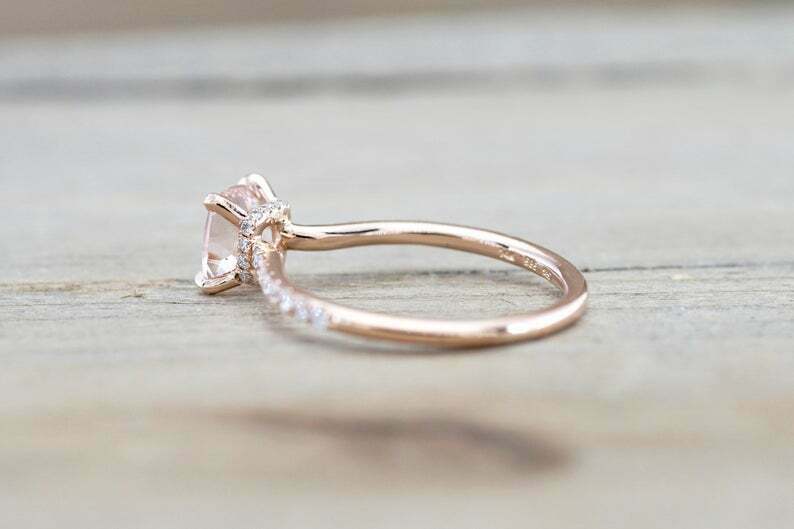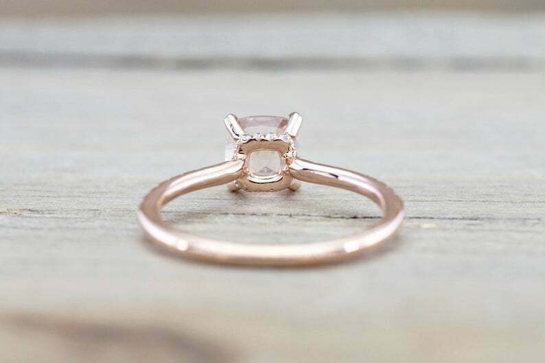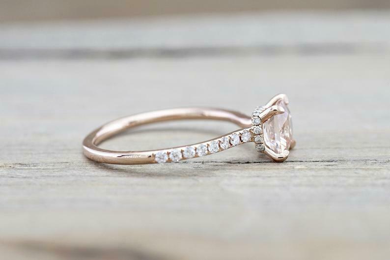 1.3ct Cushion Cut Peach Morganite Engagement Ring Hidden Halo 14k Rose Gold Over