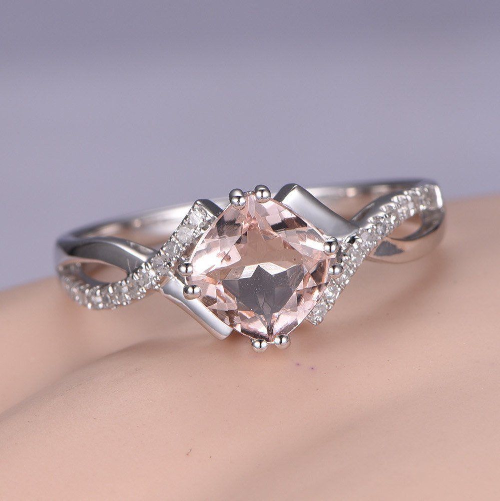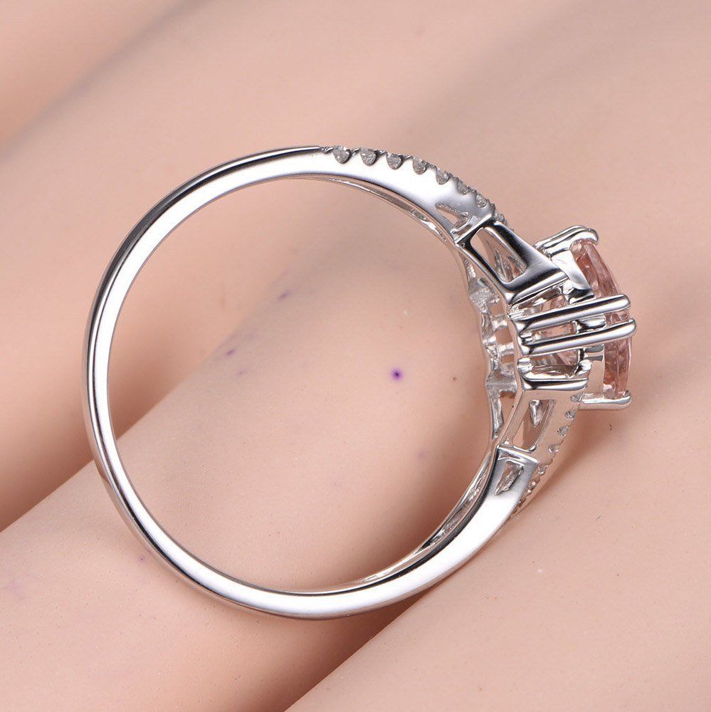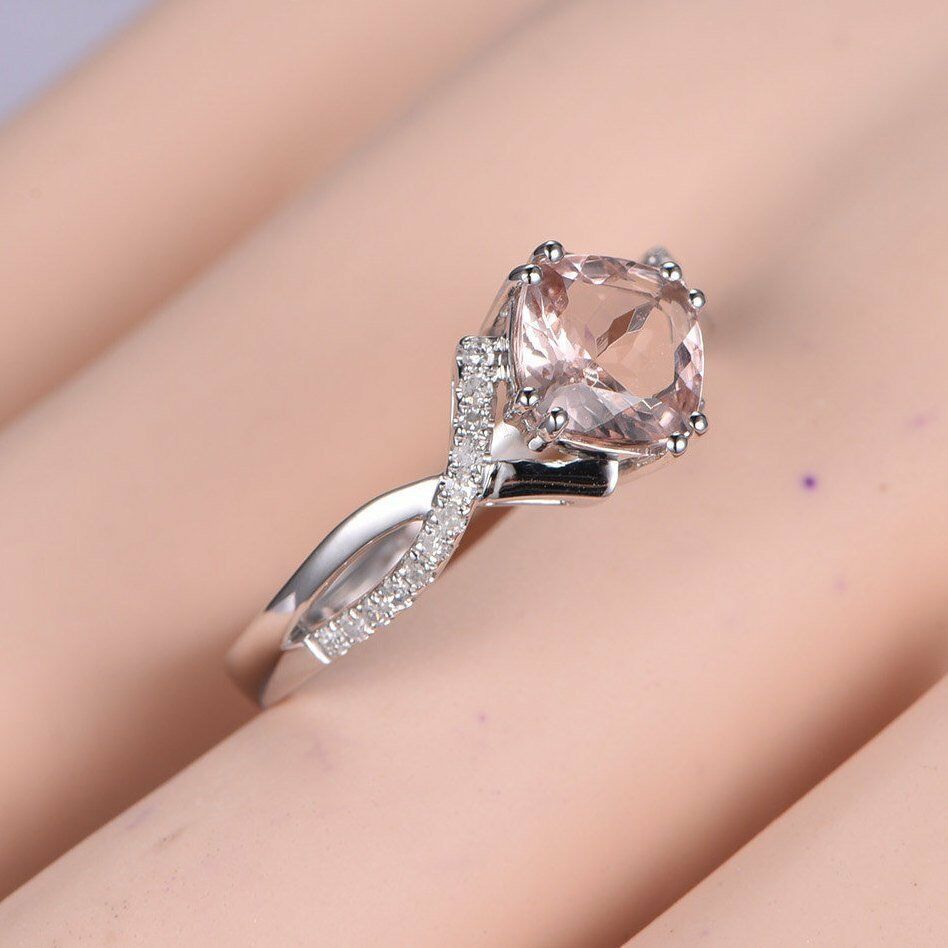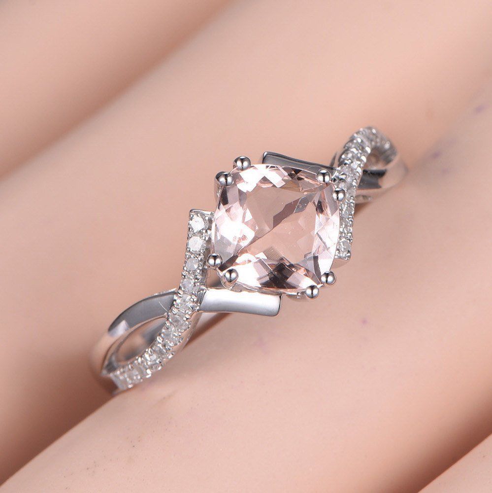 1.3ct Cushion Cut Peach Morganite Promise Engagement Ring 14k White Gold Finish