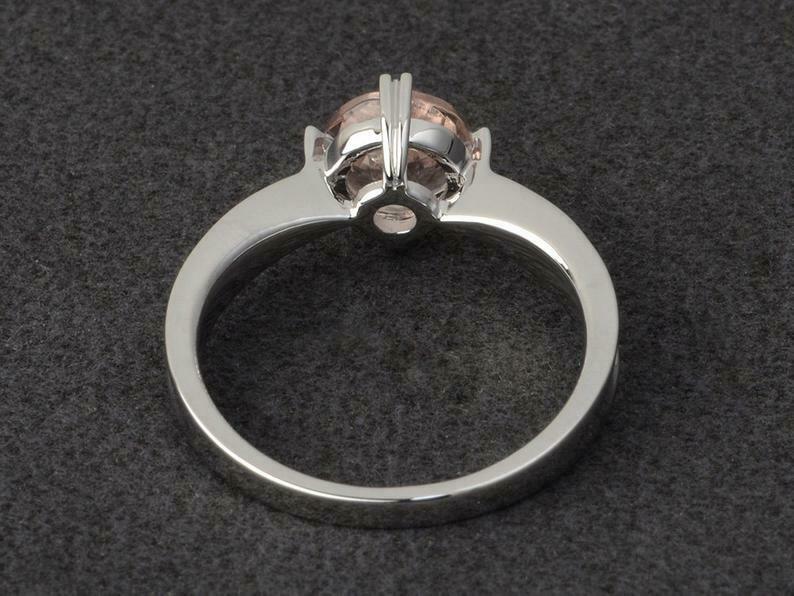 1.3ct Engagement Ring Round Cut Peach Morganite Solitaire 14k White Gold Finish