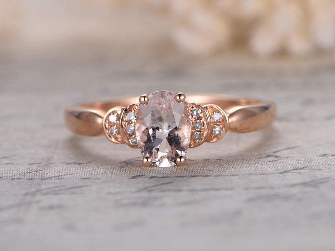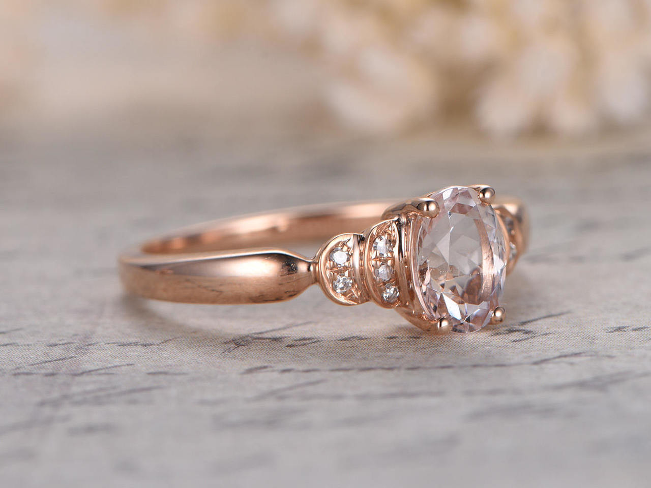 1.3ct Oval Cut Peach Morganite Diamond Accents Promise Ring 14k Rose Gold Finish
