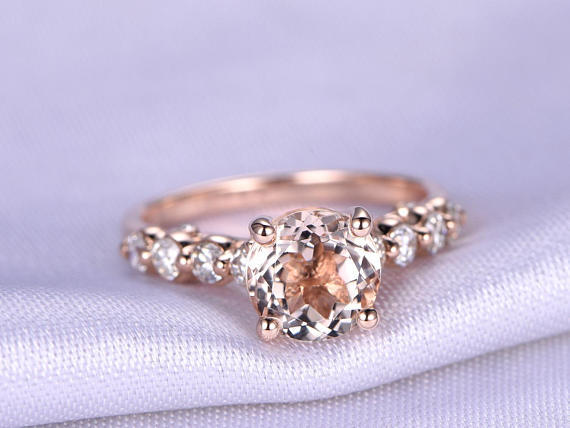 1.3ct Round Cut Morganite Engagement Ring Diamond Accents 14k Rose Gold Finish