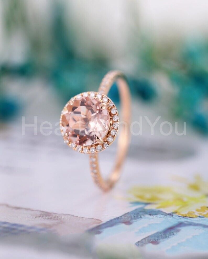 1.3ct Round Cut Simulated Morganite Halo Engagement Ring 14k Rose Gold Plated