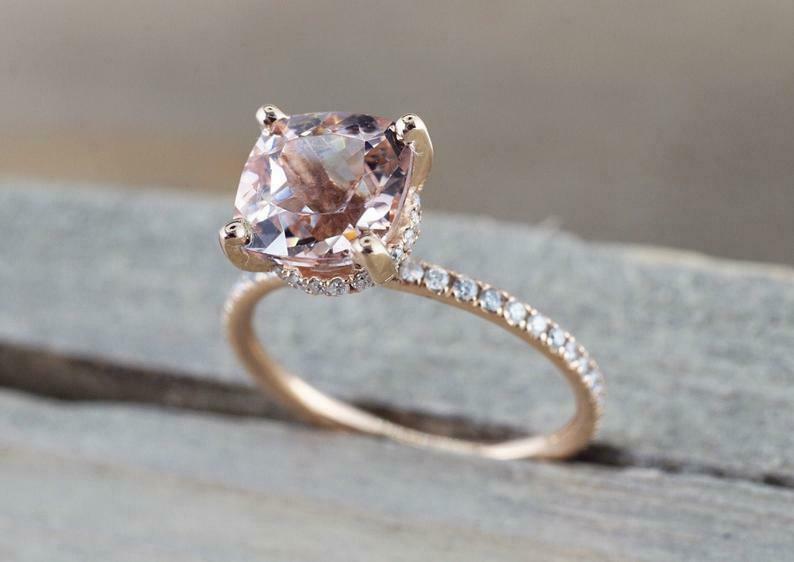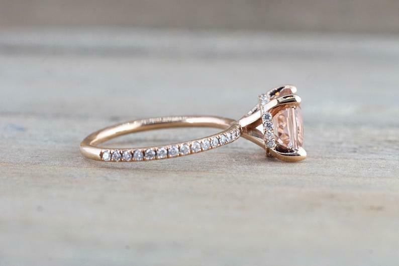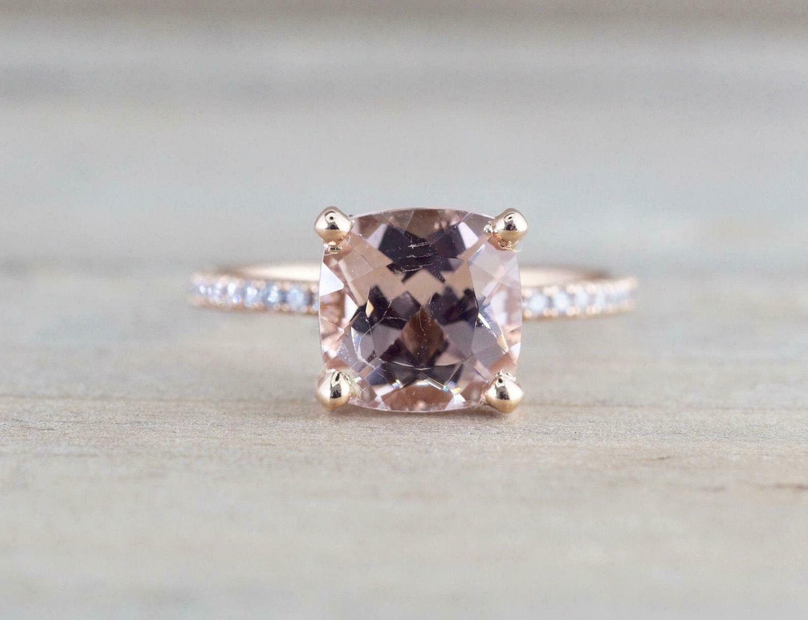 1.4ct Cushion Cut Morganite Engagement Ring 14k Rose Gold Finish Diamond Accents