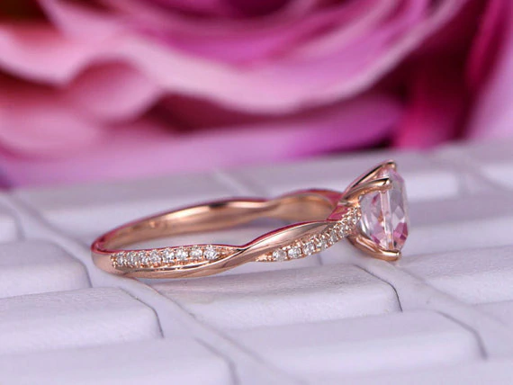1.4ct Cushion Morganite Engagement Ring Twist Accent Solitaire 14k RoseGold Over