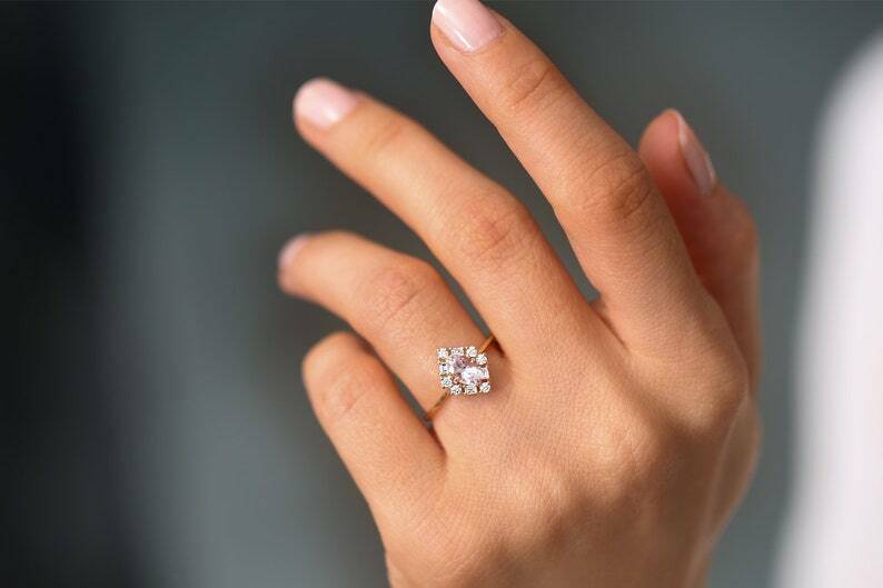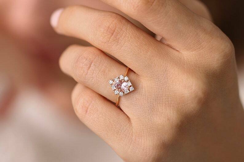 1.4ct Engagement Ring Oval Cut Peach Morganite Halo Minimalist 14k Rose Gold Finish