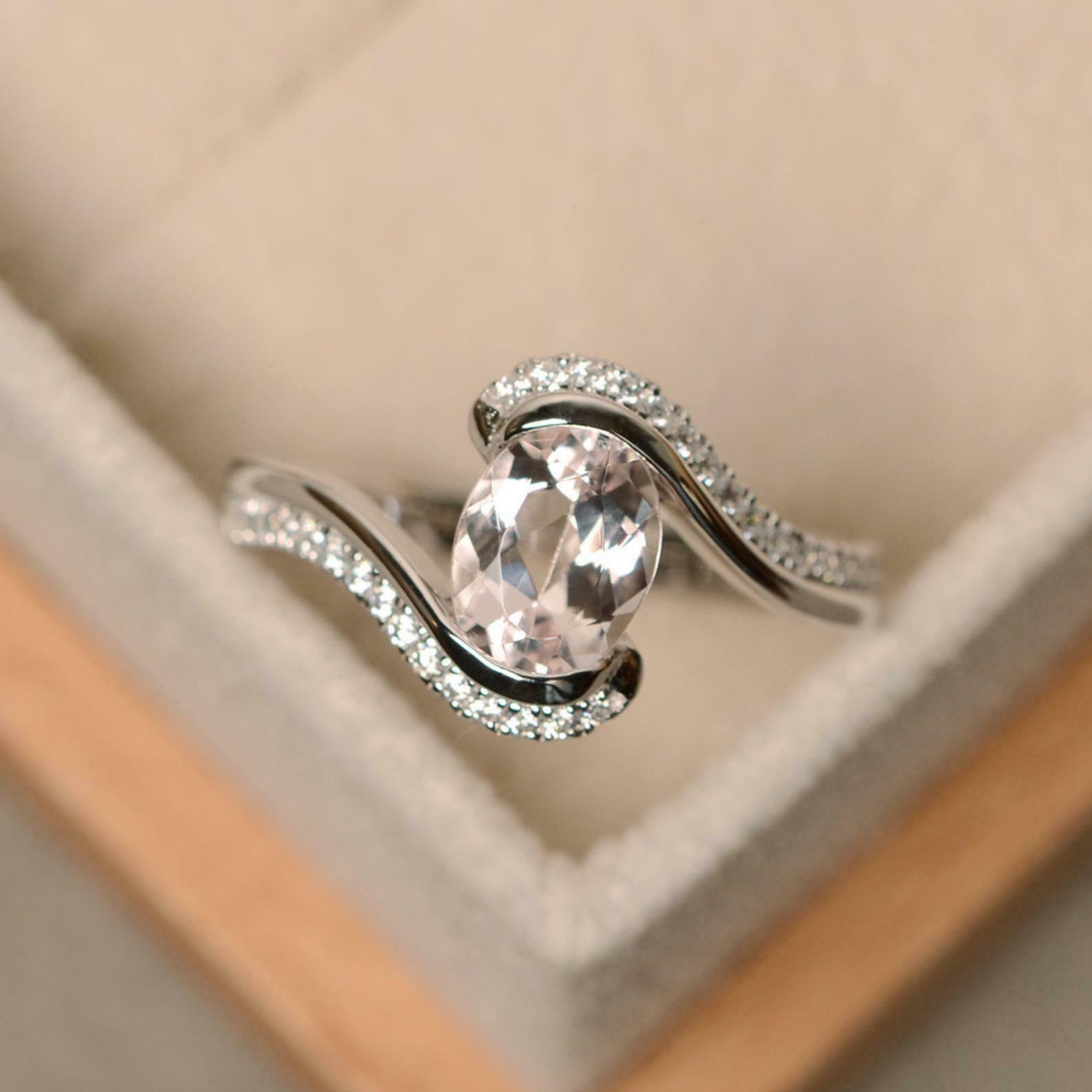 1.4ct Engagement Ring Oval Cut Morganite Swirl with Accents 14k WhiteGold Finish