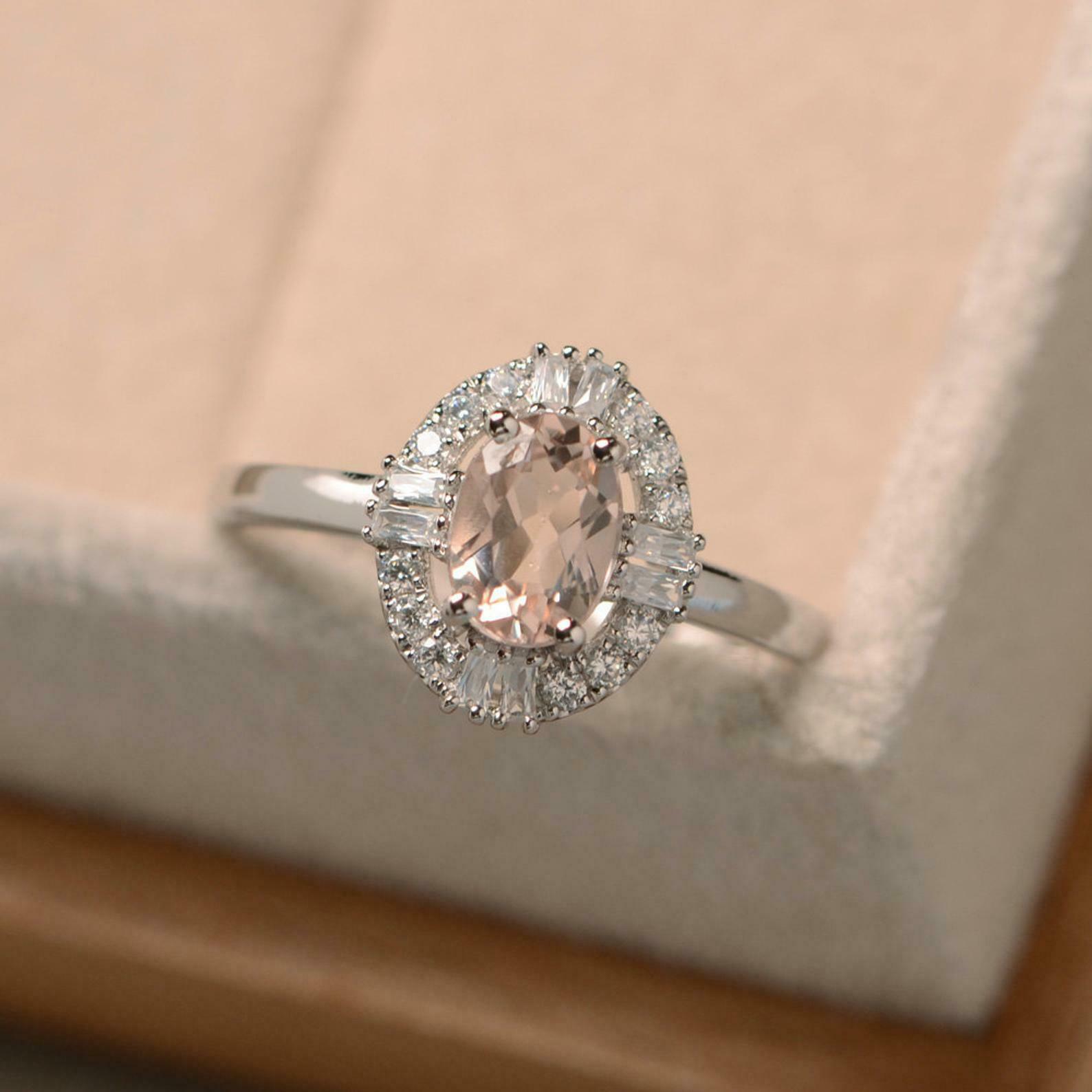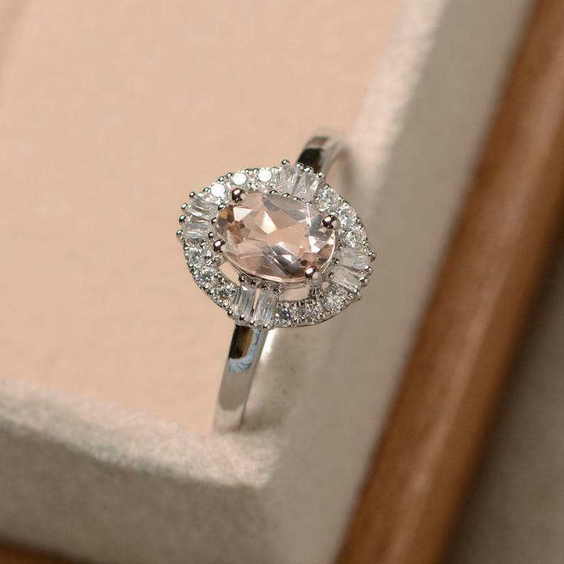 1.4ct Engagement Ring Oval Cut Peach Morganite Ballerina 14k White Gold Finish