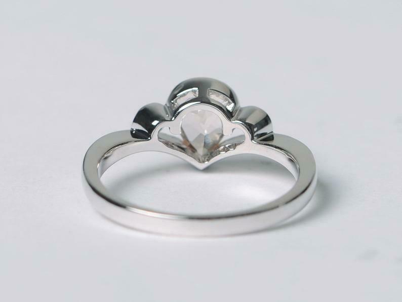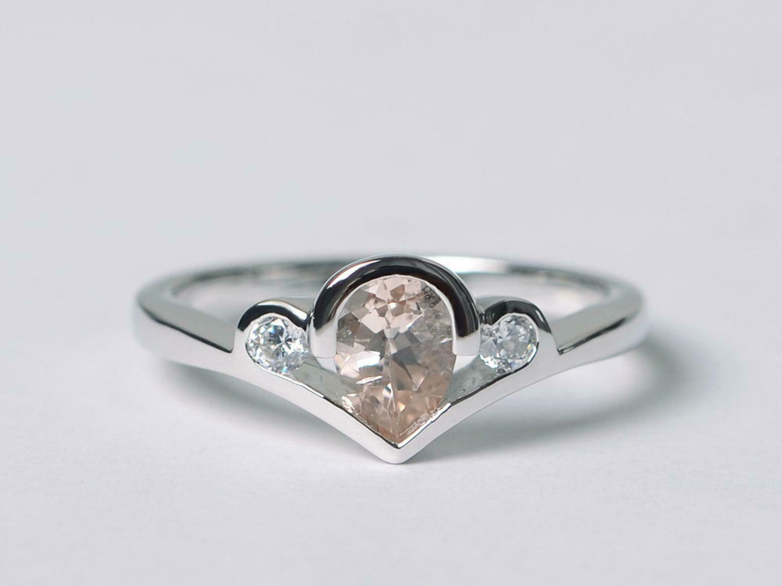 1.4ct Engagement Ring Pear Cut Peach Morganite Crown Design 14k White Gold Finish