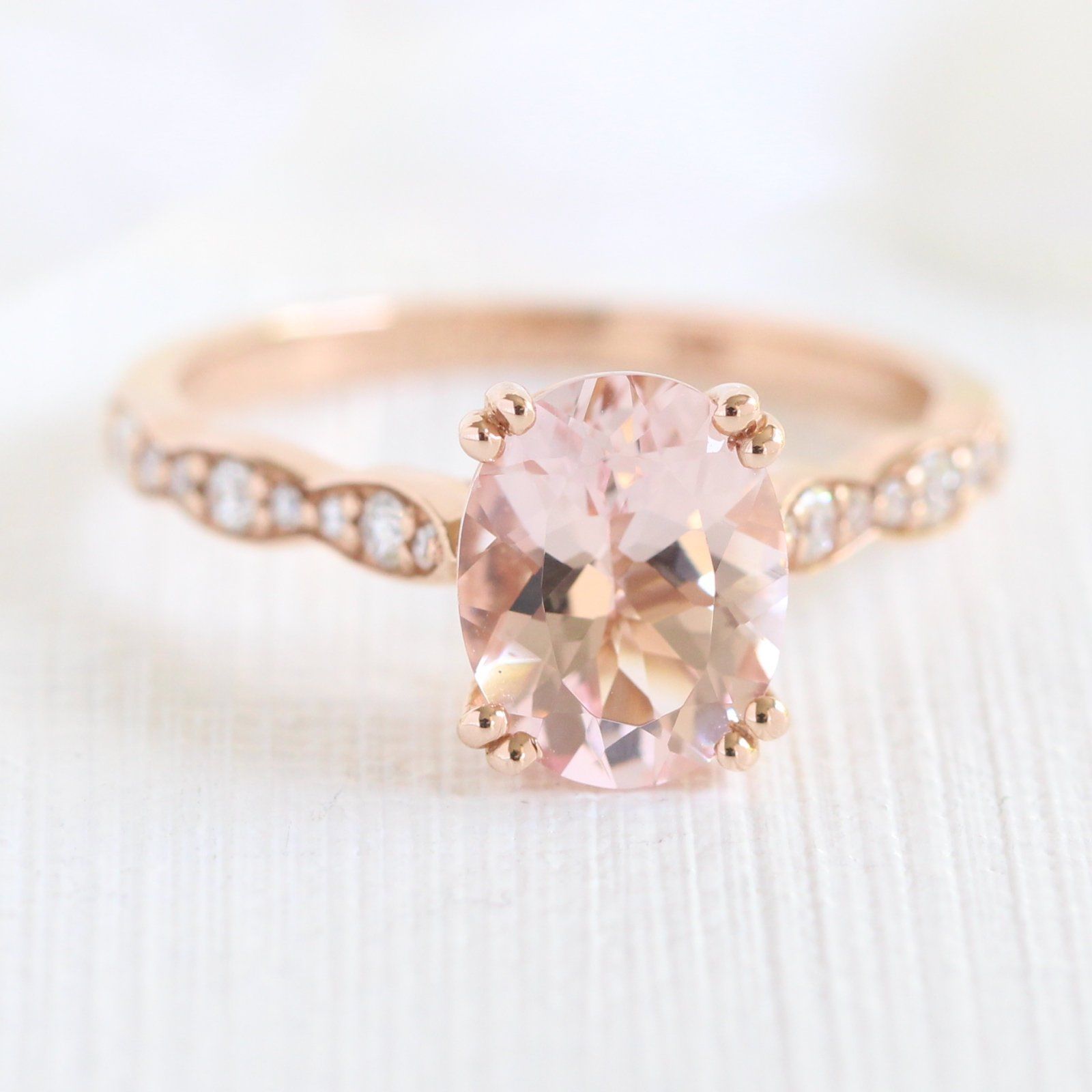 1.4ct Oval Cut Peach Morganite Solitaire Engagement Ring 14k Rose Gold Finish