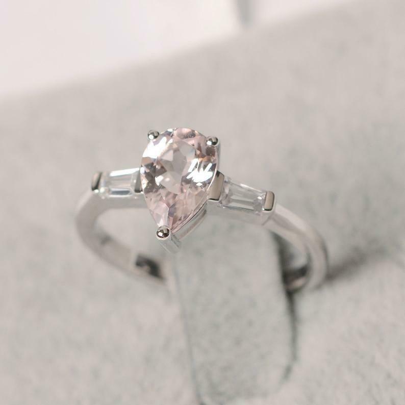 1.4ct Pear Cut Peach Morganite Tapered Baguette Accents Ring 14k White Gold Over