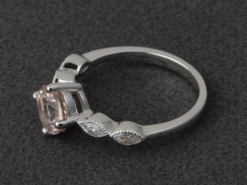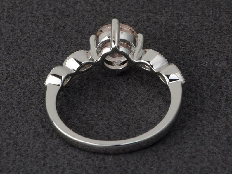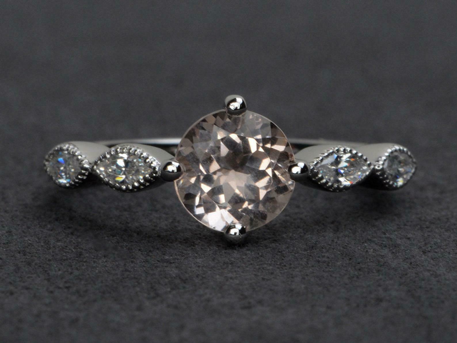 1.4ct Round Cut Peach Morganite Solitaire with Accent Ring 14k White Gold Finish