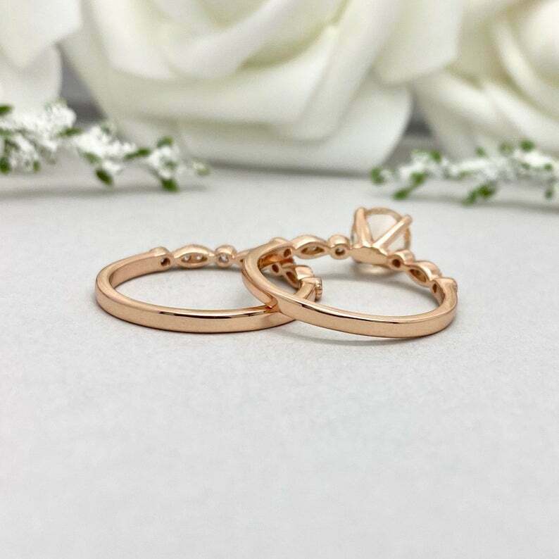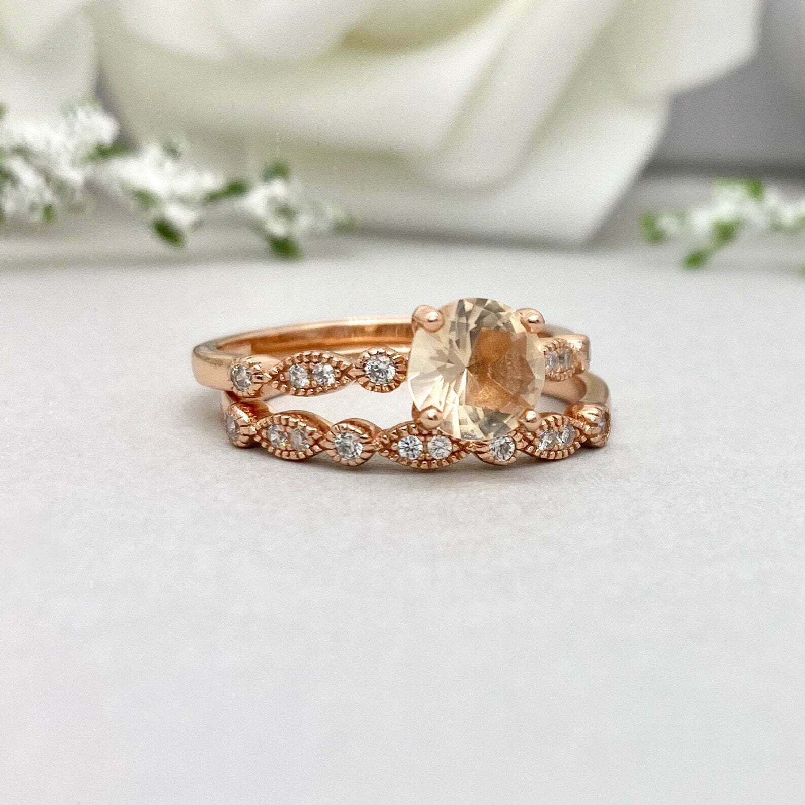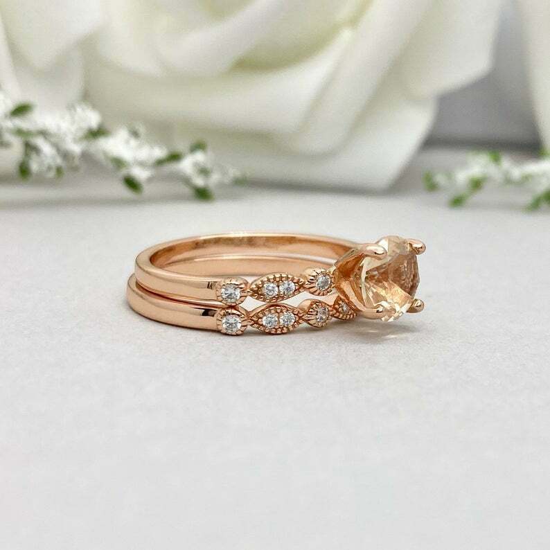 1.55ct Engagement Ring Round Cut Peach Morganite Bridal Set 14k Rose Gold Finish