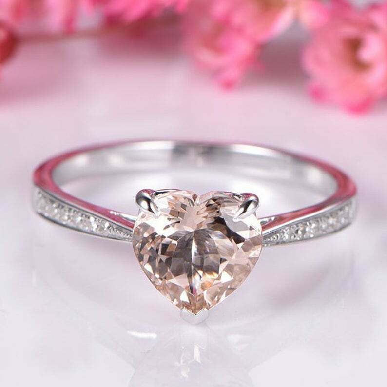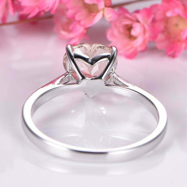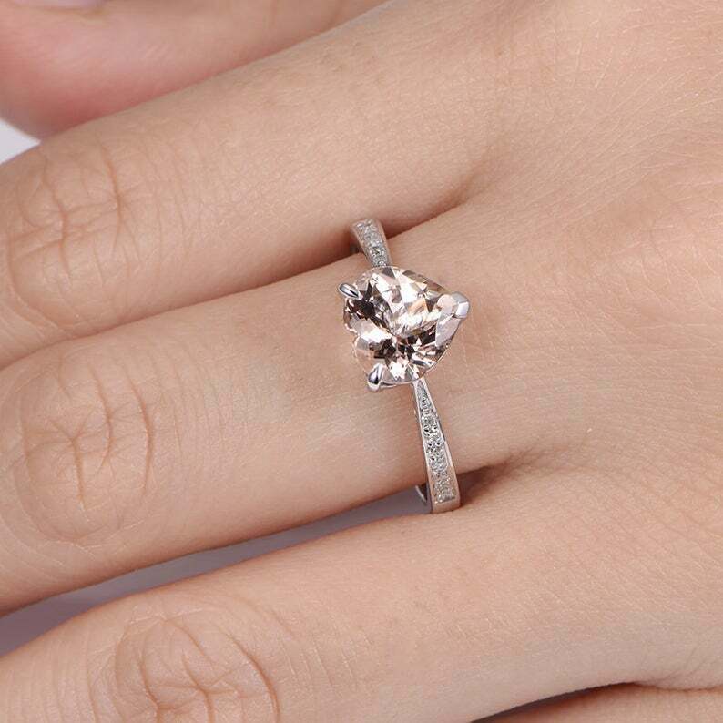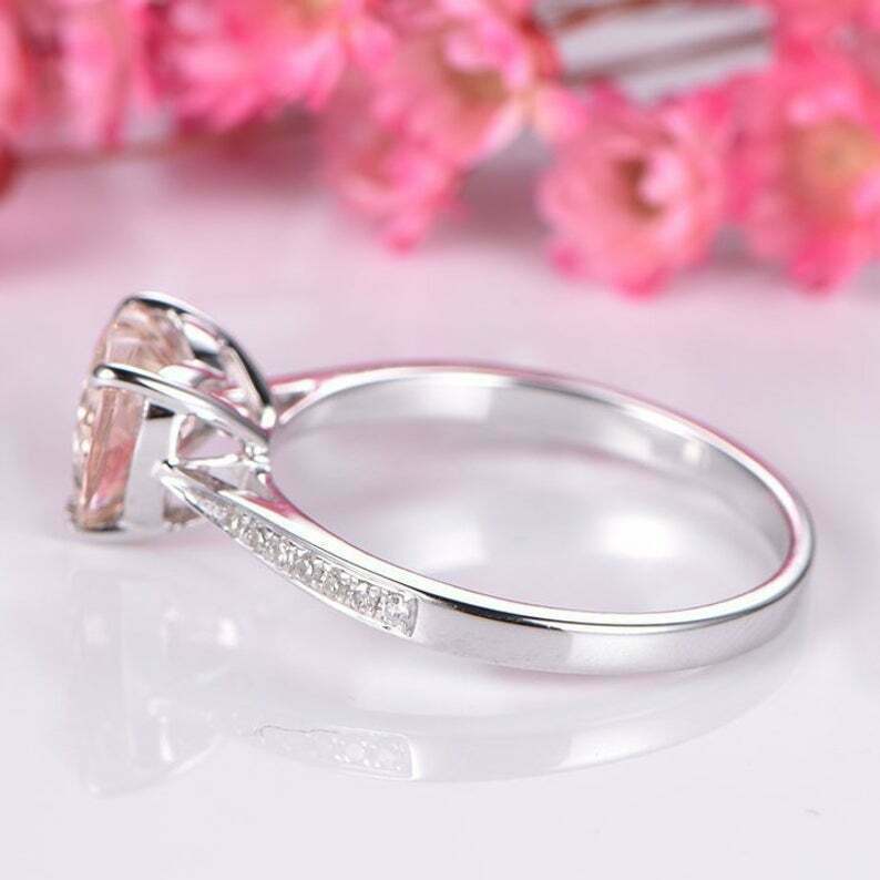 1.5ct Emerald Cut Peach Morganite Engagement Ring Solitaire Accent 14k White Gold Over