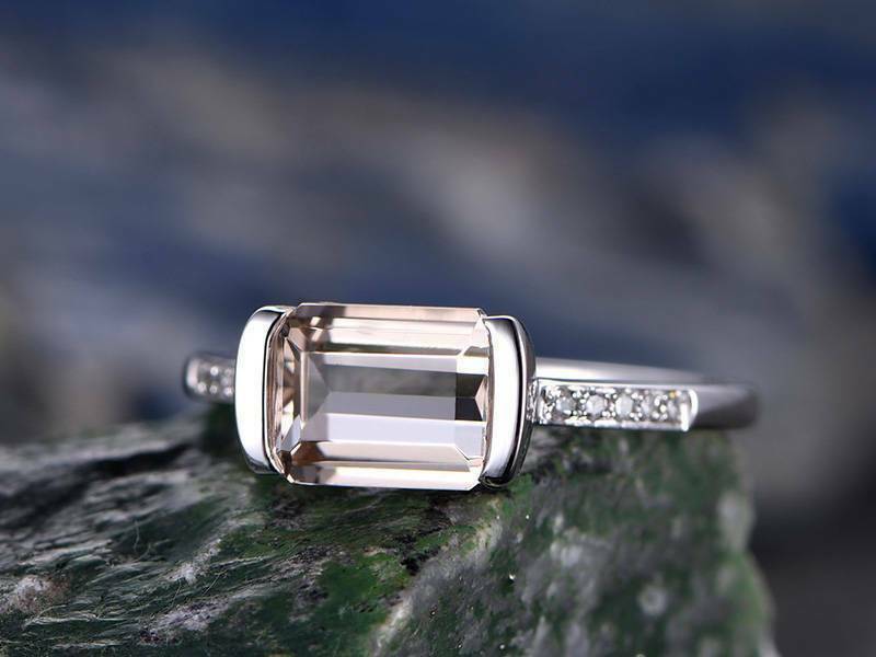 1.5ct Emerald Cut Peach Morganite Solitaire Engagement Ring 18K White Gold Over