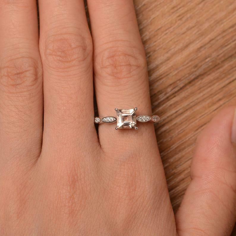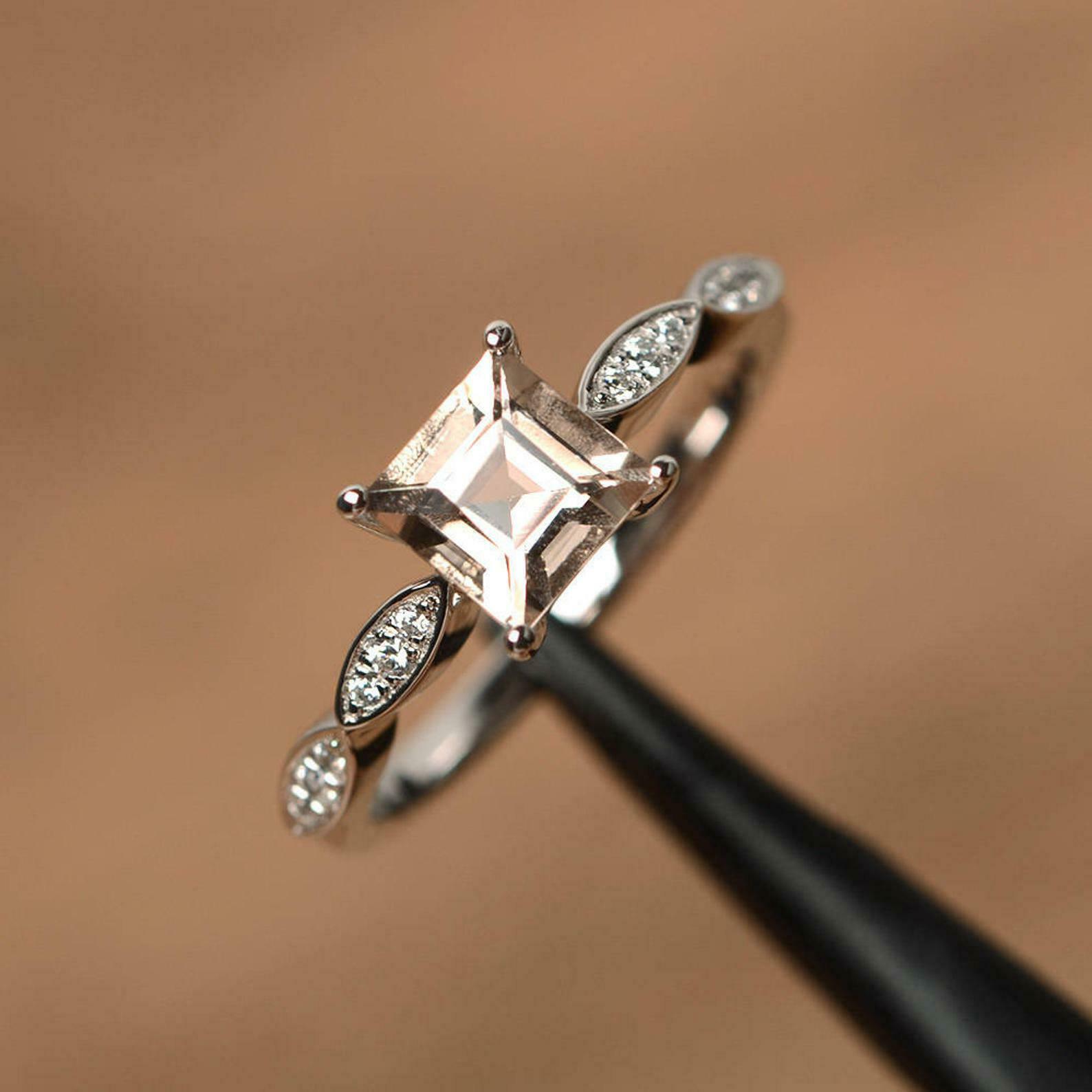 1.5ct Engagement Ring Asscher Peach Morganite Diamond Accent 14k White Gold Over