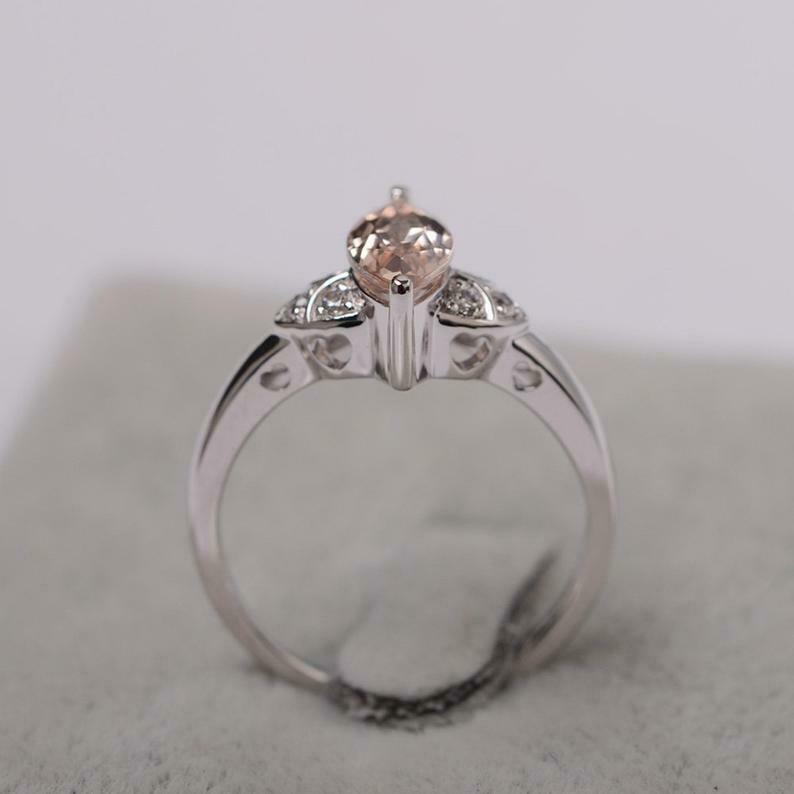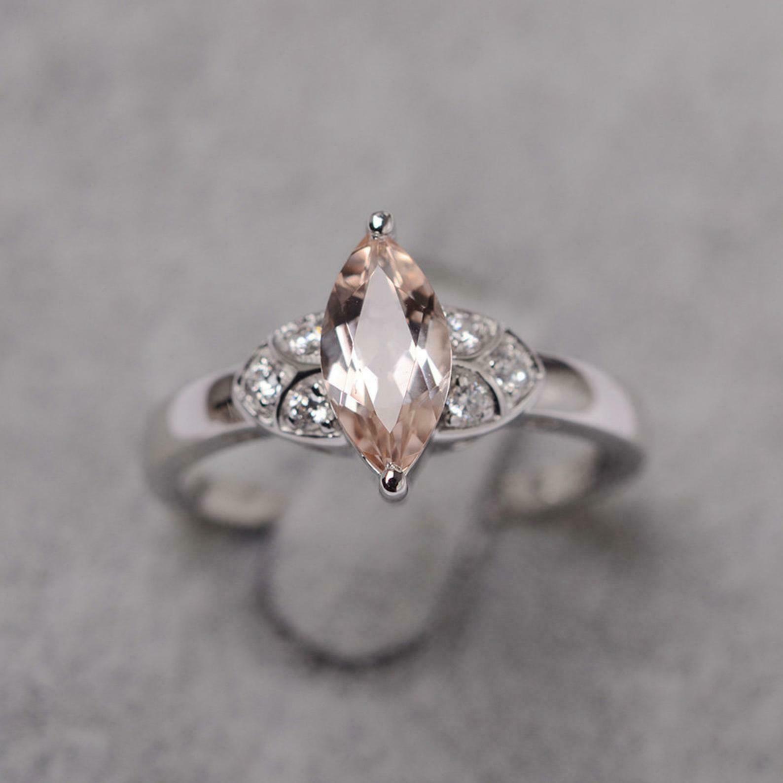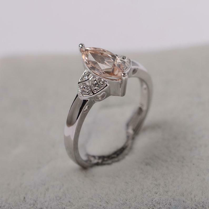 1.5ct Engagement Ring Marquise Cut Peach Morganite Art Deco 14k WhiteGold Finish
