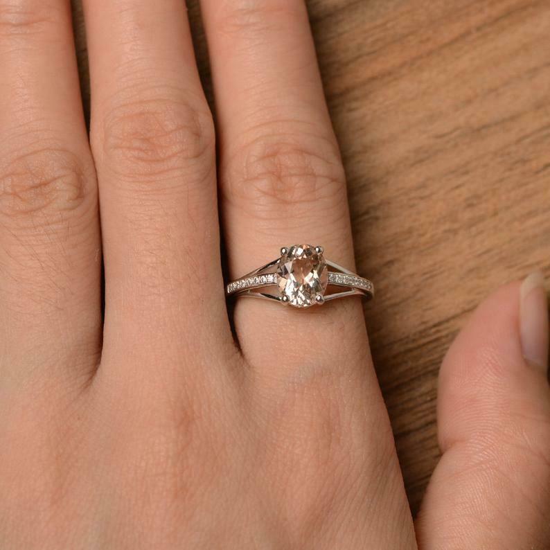 1.5ct Engagement Ring Oval Cut Peach Morganite Split Shank 14k White Gold Finish