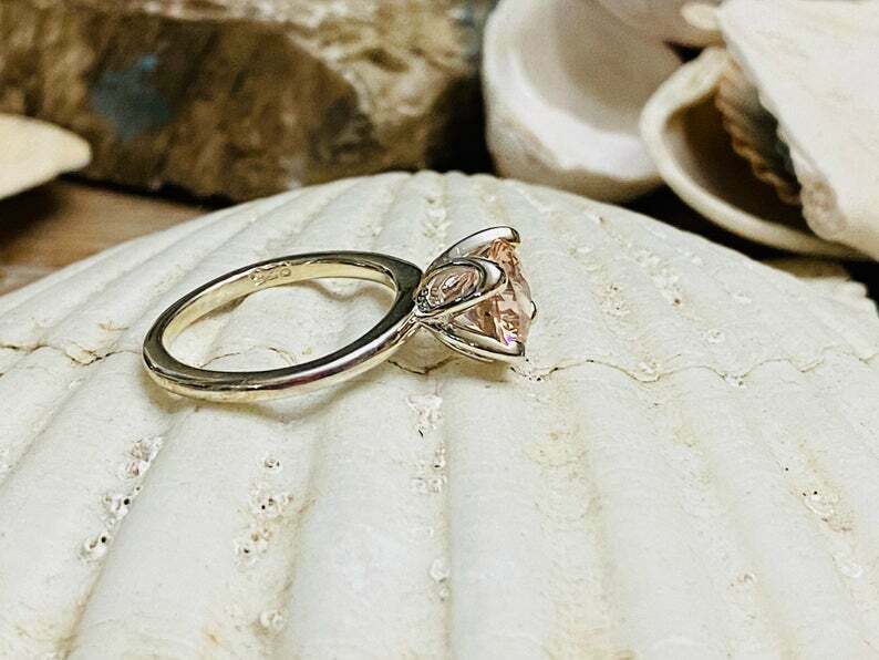1.5ct Engagement Ring Round Cut Peach Morganite Solitaire 14k White Gold Finish