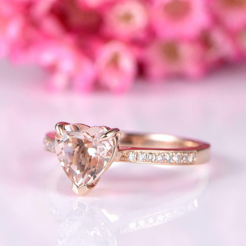 1.5ct Heart Cut Peach Morganite Diamond Accent Solitaire Ring 14k Rose Gold Over