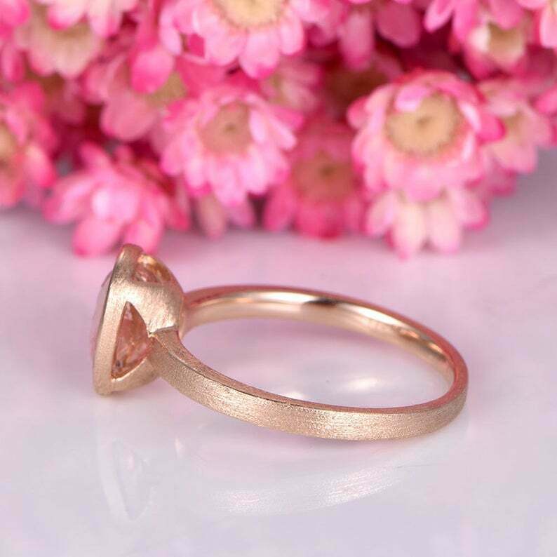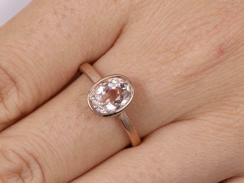 1.5ct Oval Cut Morganite Engagement Ring Bezel Set Solitaire 14k RoseGold Finish