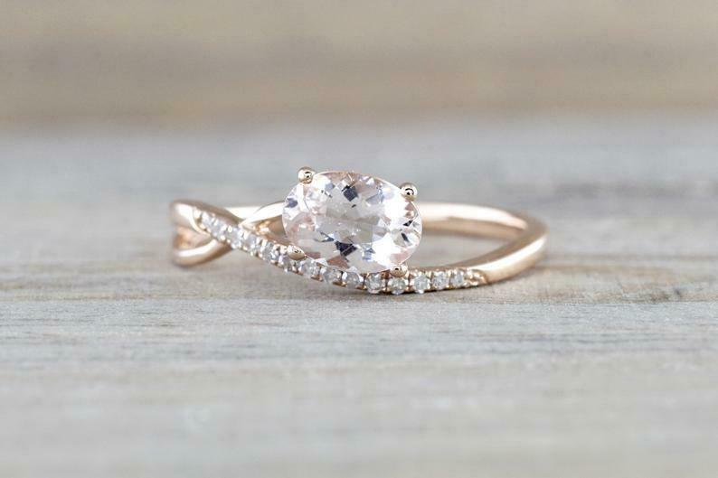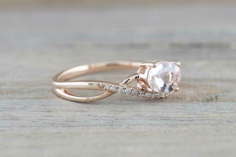 1.5ct Oval Cut Morganite Engagement Ring Infinity Solitaire 14k Rose Gold Finish