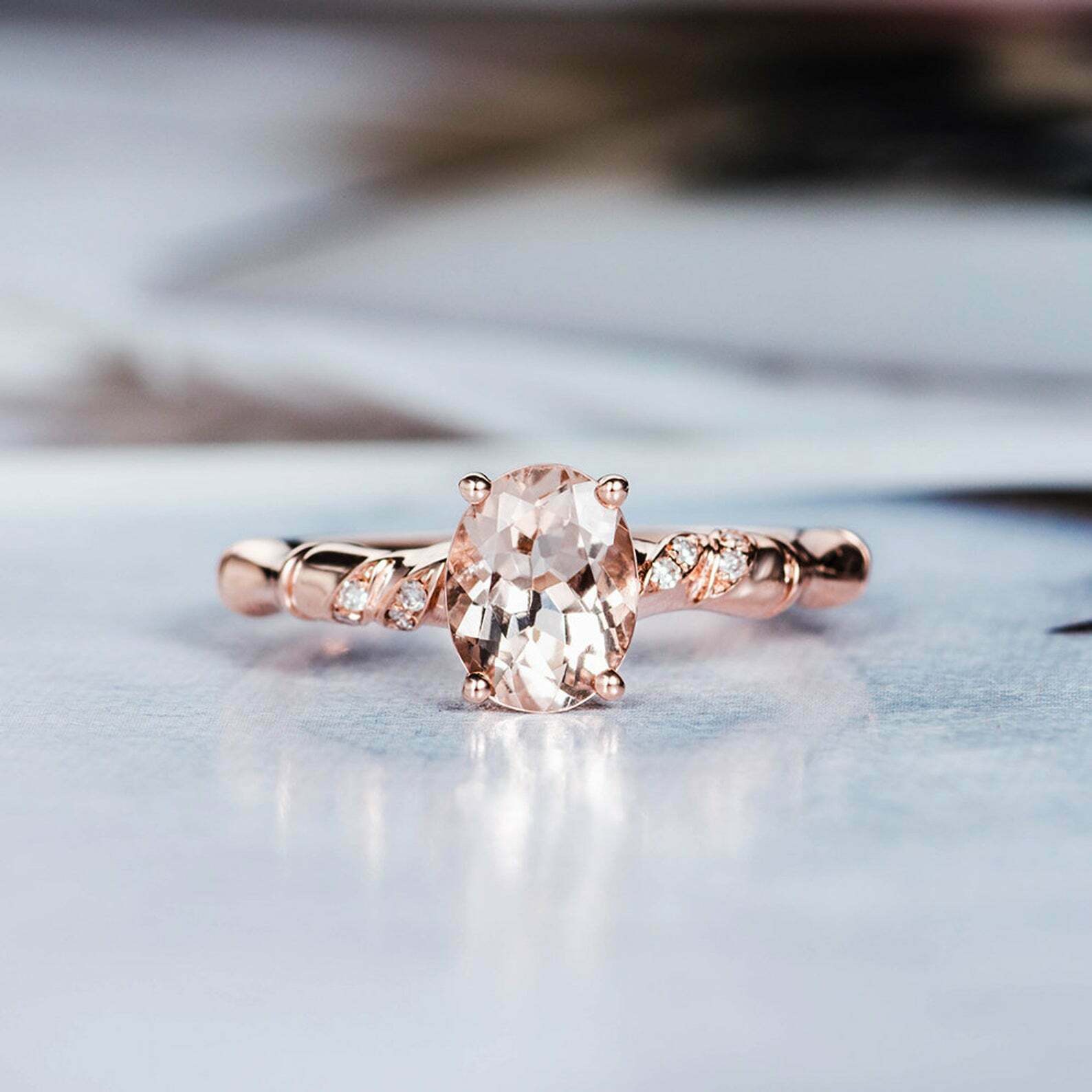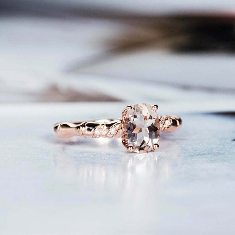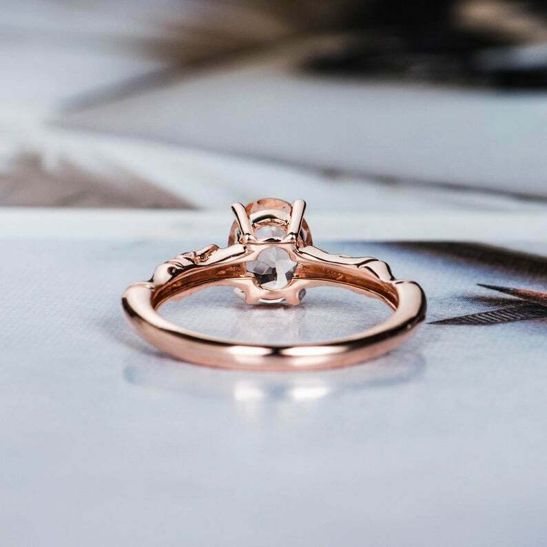 1.5ct Oval Cut Peach Morganite Floral Twist Band Solitaire Ring 14k Rose Gold Finish