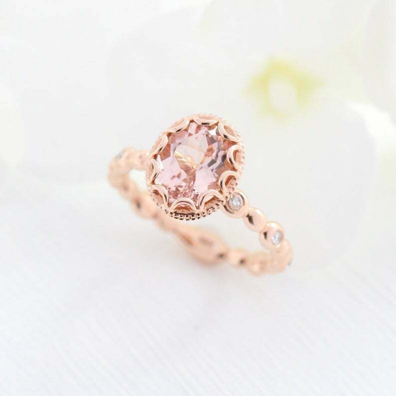 1.5ct Oval Cut Peach Morganite Diamond Accents Floral Ring 14k Rose Gold Finish
