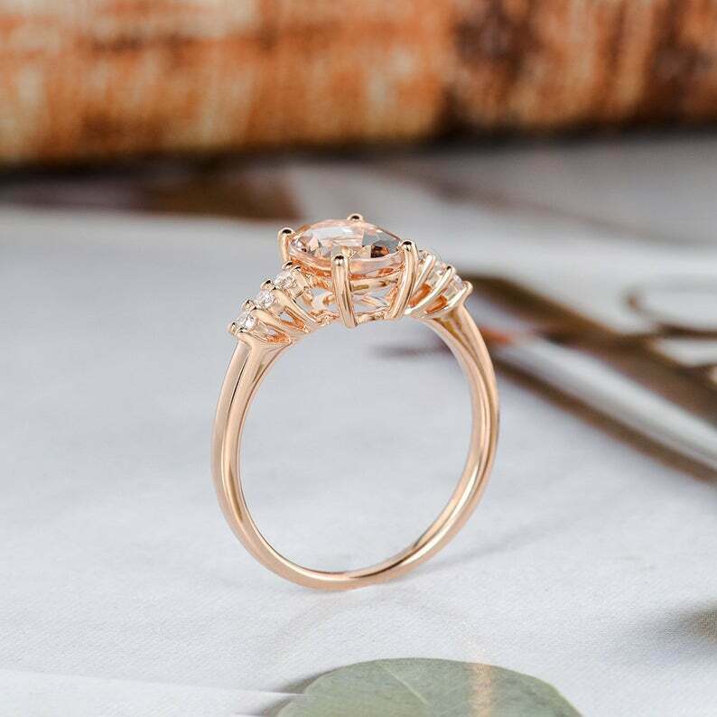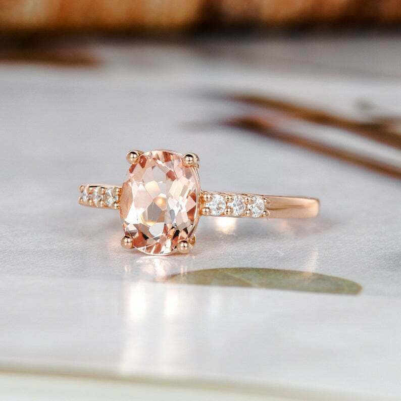 1.5ct Oval Cut Peach Morganite Engagement Ring Diamond Accents 14k RoseGold Over